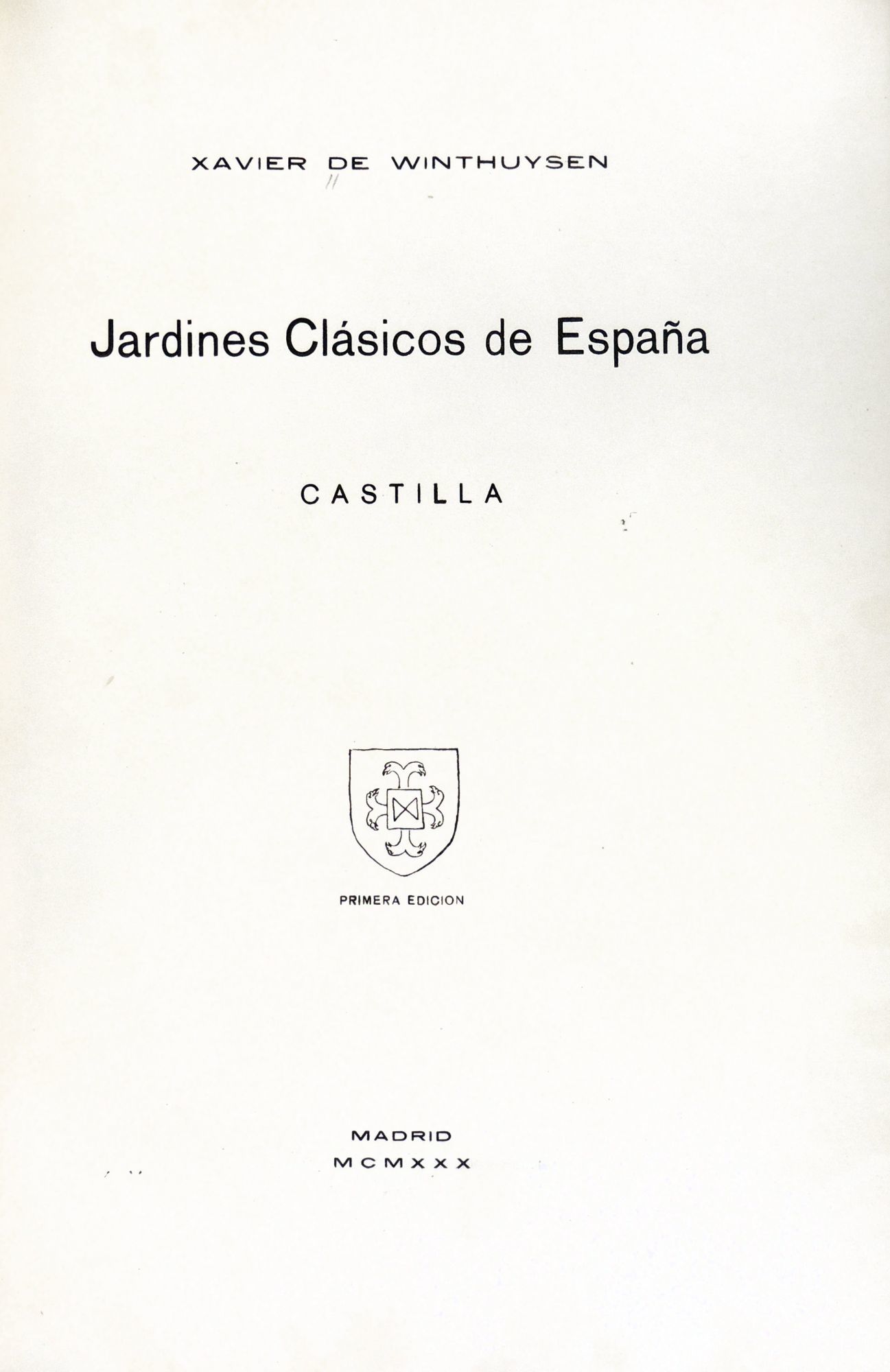 Madrid: Industrial Grafica, 1930. Hardcover. Very Good. Hardcover. A handsome copy of De Winthuysen's classic work on Spanish gardens. De Winthuysen (1874-1956) was a well known Spanish artist and garden designer. He worked on the recovery and redesign in neo-Classical style of various gardens in Spain, many photographed in black and white and described in this volume. Bound in full brown leather with original paper covers and spine bound in. Accession number stamped on original paper front paper cover. Leather is very good with slight bumping, some rubbing along spine, and small chip to rear upper corner. Scratch on first cover. Red leather spine label with title and author. Inner dentelles and marbled red, green, and gold endpapers. Interior pages are also in very good condition. Owner bookplate affixed to rear free endpaper. A lovely book honoring the creation and design of gardens. In Spanish. Small quarto. 131 pages plus index. GARD/052021.