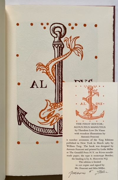 New York: Targ Editions, 1983. Decorative Boards. Fine. Antonio Frasconi. An all-but-pristine copy of the 1983 signed/limited. #5 OF 250 COPIES SIGNED BY BOTH THE ILLUSTRATOR ANTONIO FRASCONI AND THE PRINTER LESLIE MILLER at the colophon. Clean and Fine in its off-white cloth over decorative blindstamped boards. Quarto, also includes a sturdy, VG+ to Near Fine example of the publisher's unprinted card slipcase.
