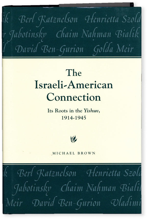 Detroit: Wayne State University Press, 1996. First Edition. First Printing, a review copy, with the publisher's publicity letter laid in. Octavo (23.5cm); hunter green cloth, with titles stamped in silver on spine; dustjacket; [6],7-396,[4]pp. Spine lean, else a clean, Near Fine copy in a Fine dustjacket. Detailed study of six central figures of the yishuv: Revisionist-Zionist maverick Vladimir Jabtinsky, poet Chaim Nahman Bialik, labor leader Berl Katznelson, Henrietta Szold (American-born founder of Hadassah), Zionist leader (and later prime minister) Golda Meir, and David Ben-Gurion.
