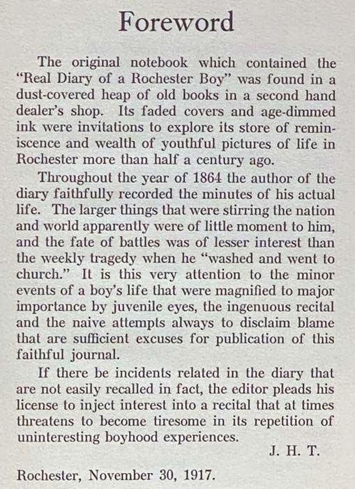 The Real Diary of a Rochester Boy, 1864 - Reprinted from the Rochester Herald