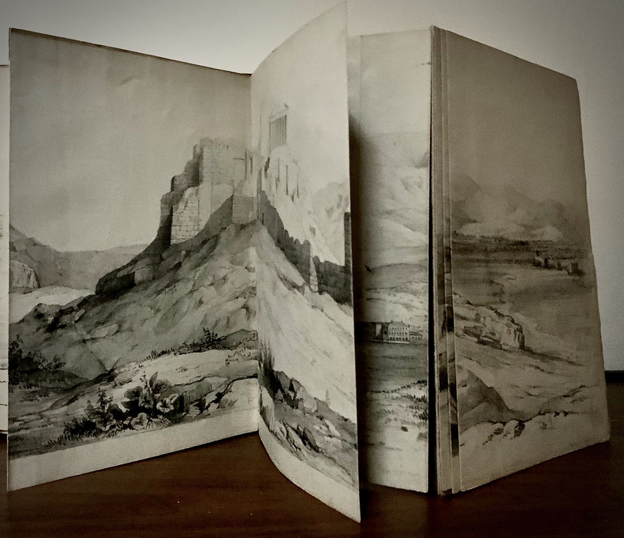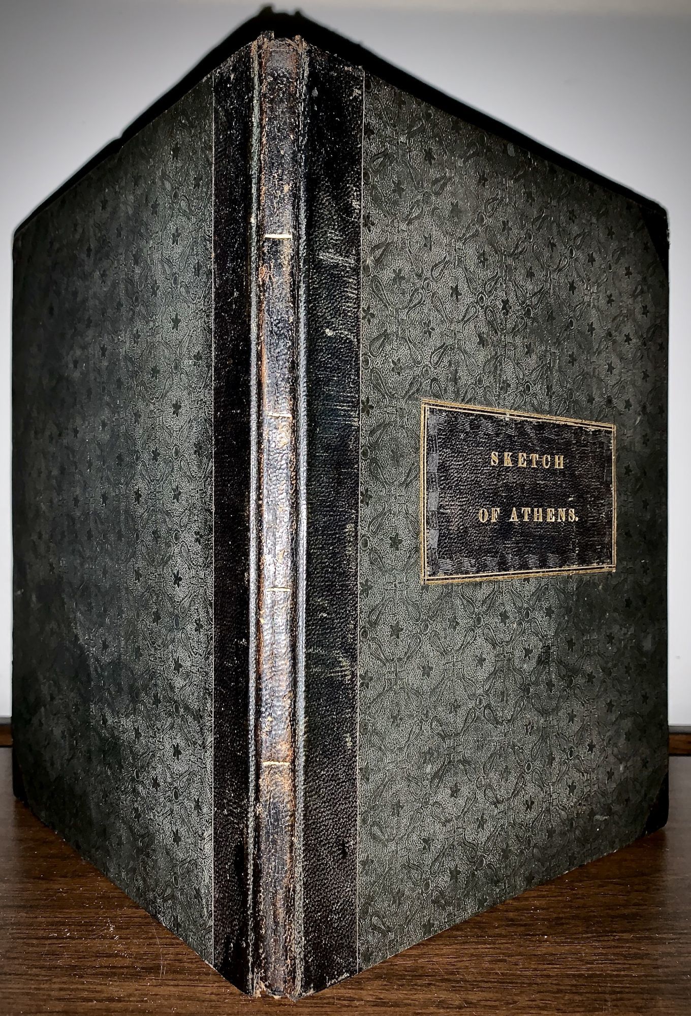 London: W.H. Dalton, 1839. Second edition. Hardcover. Contemporary three quarter black morocco over dark green cloth covered boards stamped in blind and gilt. Very good. 8 pages in text. 27.3 x 22 cm. Illustrated with large folding map, 27 x 268 cm., a lithographic panorama by Bracebridge sketched from Nature and on Zinc. Originally published 1836, a fund for building the Anglican Church (now St. Paul's) this edition comprises an entirely new lithograph from a drawing made from a different position near the church of St. Demetrius the Bombardier, and presents a different perspective. Bookseller ink stamp front paste-down, archival tape repair at upper stub. ABBEY LIFE 545. Referencing Mrs. Bracebridge, this edition and noting "Coloured zincograph." BLACKMER 193. Spine worn head and foot.