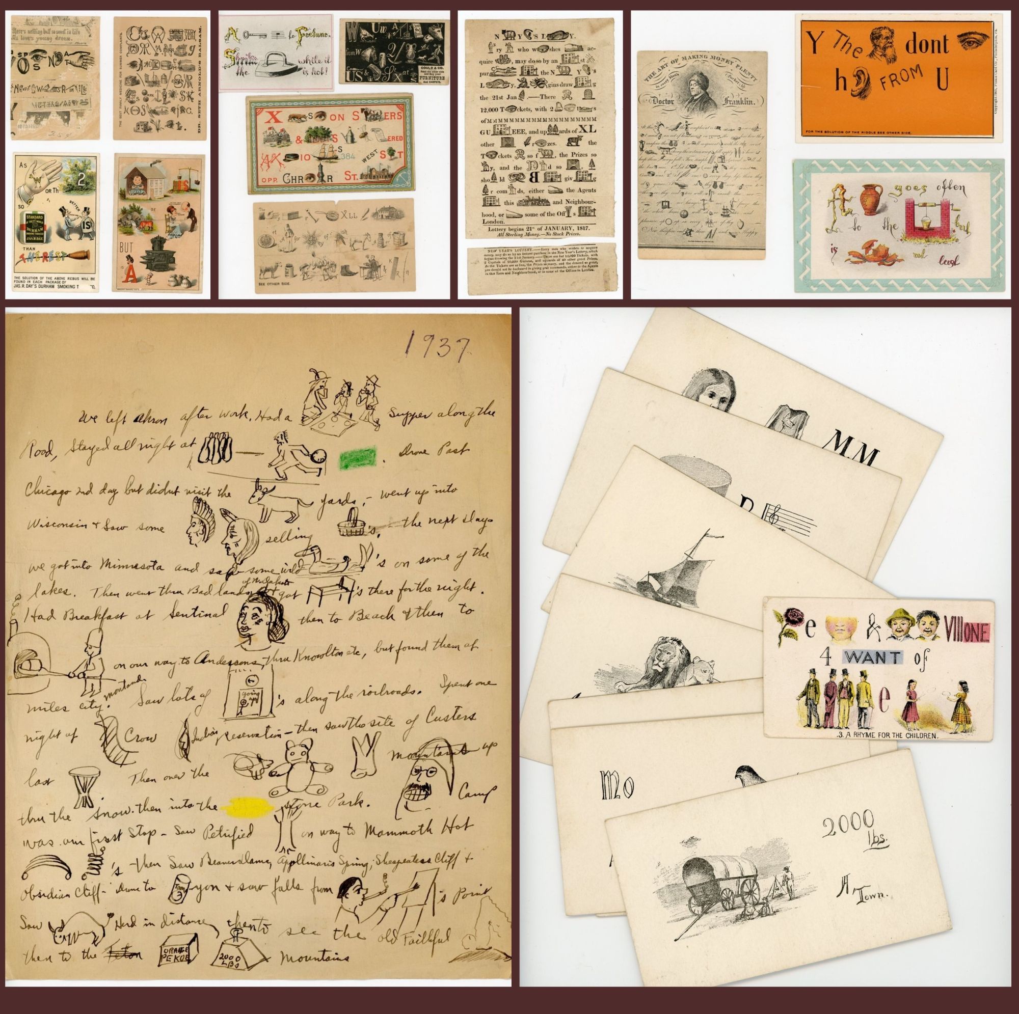 Light wear.. A collection of 29 different rebus puzzles found in ephemera of everyday life. Rebus puzzles are used to catch the eye, draw attention to the subject at hand, to educate and help develop language skills or strictly for entertainment. The collection includes