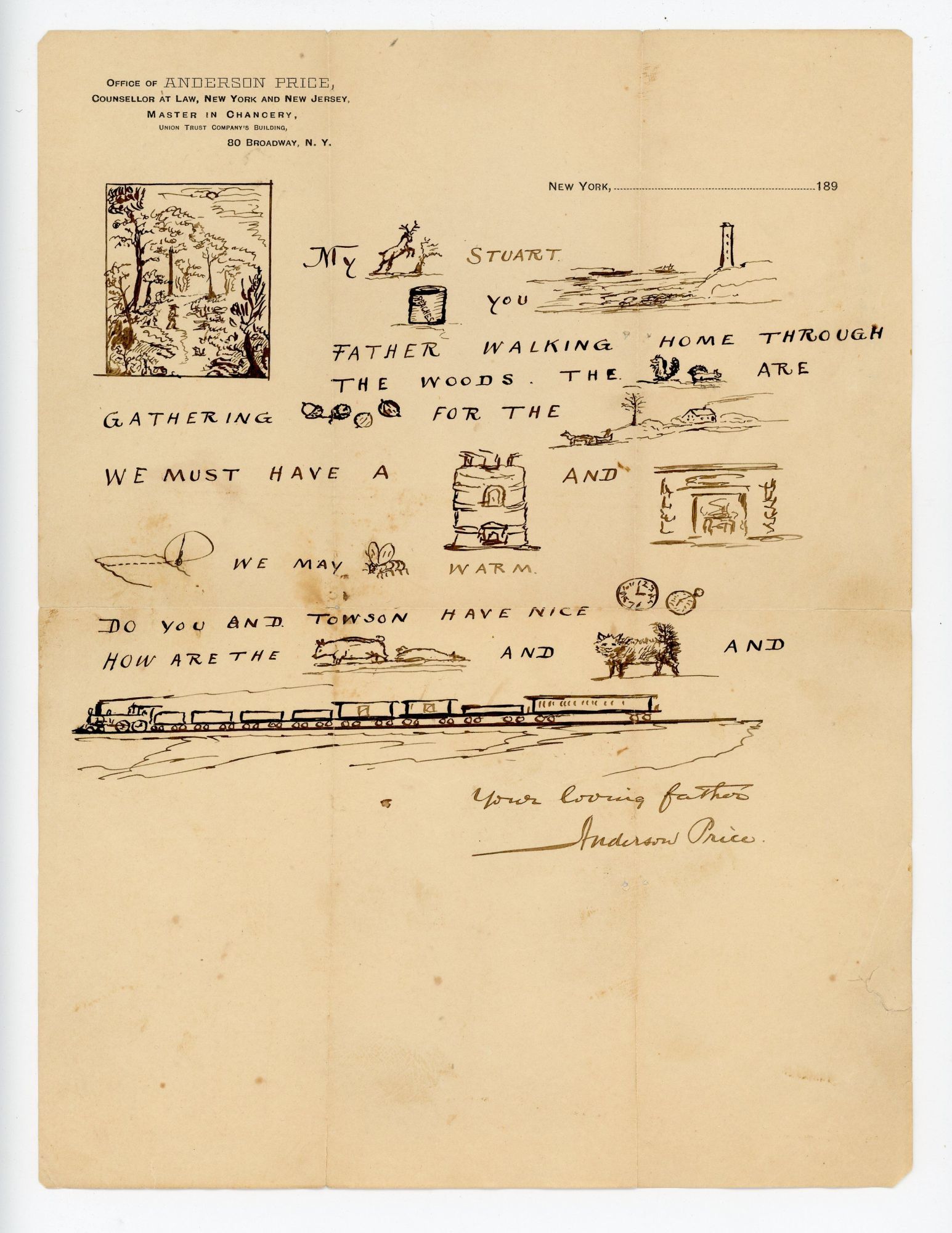 an 1890s single page letter to a child discussing a walk home through the woods.