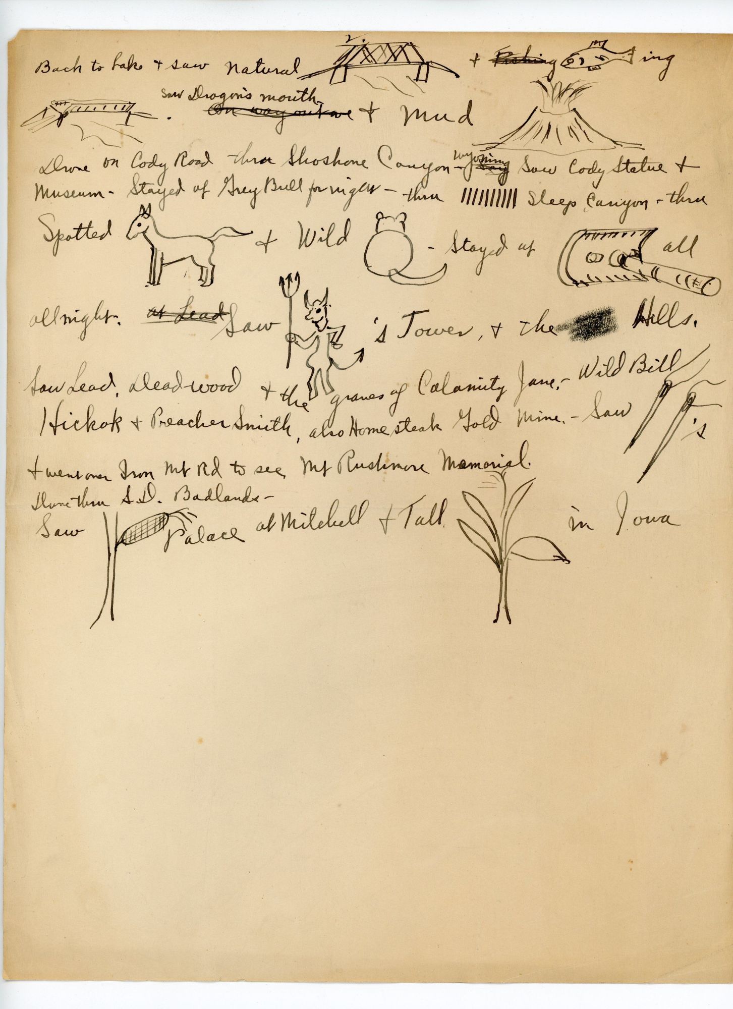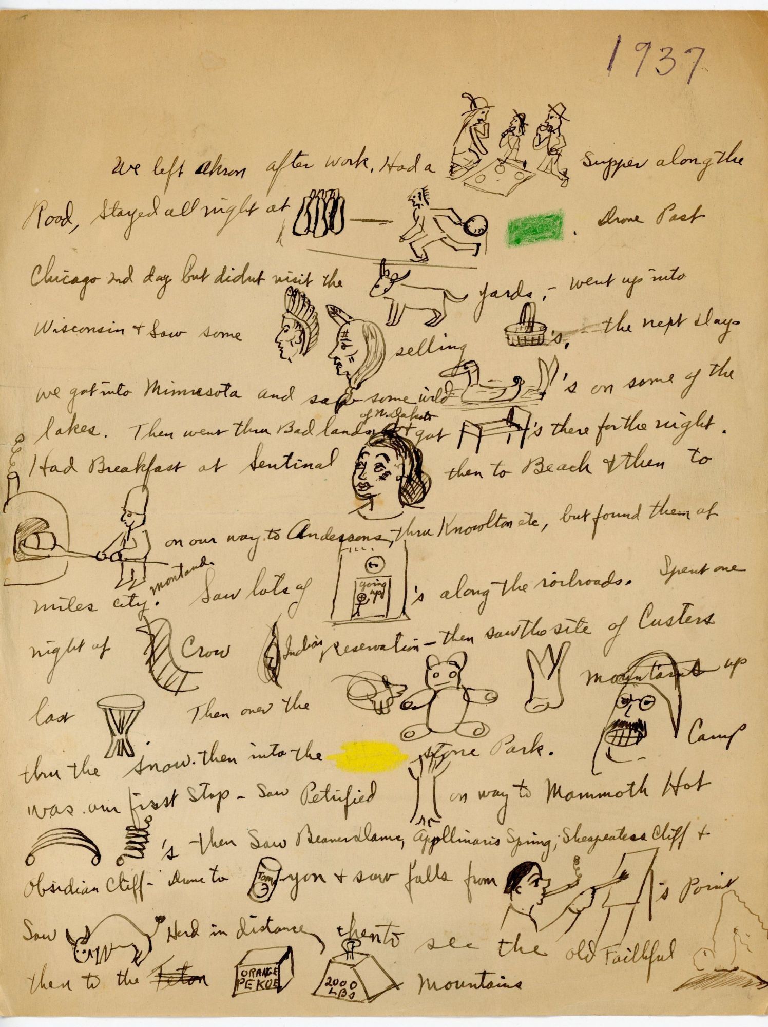 A 2 page 1937 accounting of a trip from somewhere near Bowling Green, OH through Chicago, Wisconsin, Wyoming including Yellowstone and ending in the Black Hills of South Dakota.