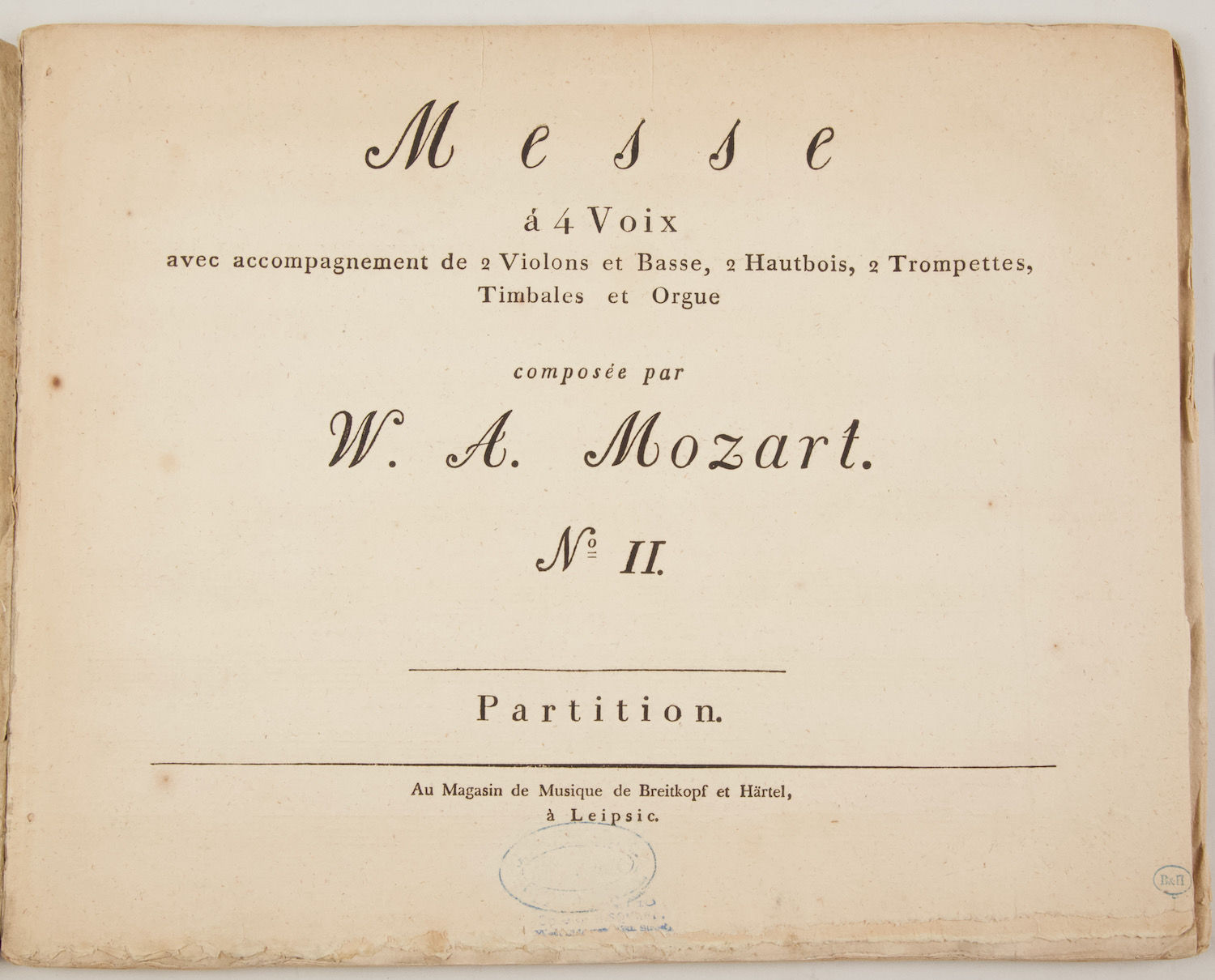 Messe á 4 Voix avec accompagnement de 2 Violons et Basse, 2 Hautbois, 2 Trompettes, Timbales et Orgue ... No. II. Partition. [KV 257]. [Full score]