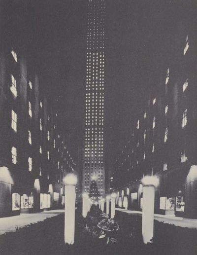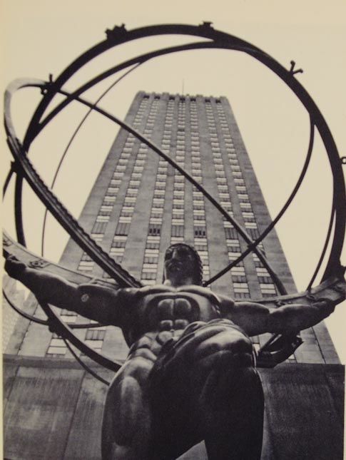 New York: Columbia University Press, 1940. First edition. Hardcover. 45 pages. The story behind the construction and building of Rockefeller Center in New York. Brief introduction by John D. Rockefeller. Text by Nelson A. Rockefeller. Includes black and white photographs by Berenice Abbott, Margaret Bourke-White, Brown Brothers, J. Walker Grimm, Fritz Henle, Wendell Macrae, Paul Woolf and others. An about good copy with some chipping to the spine ends, some wear to the corners and edges. No dust jacket. A solid copy of this nicely printed and designed book that is fairly uncommon in the dust jacket.