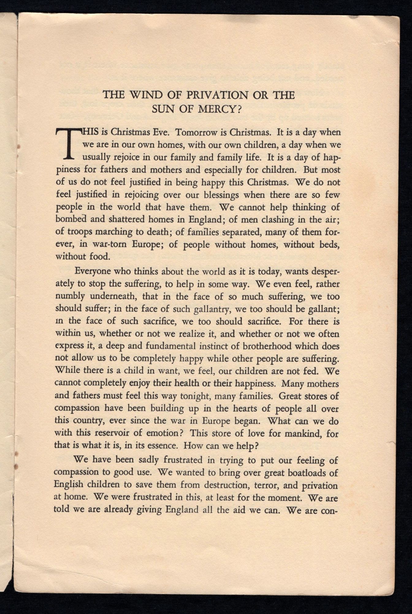 The Wind of Privation or The Sun of Mercy? Radio Address by Anne Morrow Lindbergh