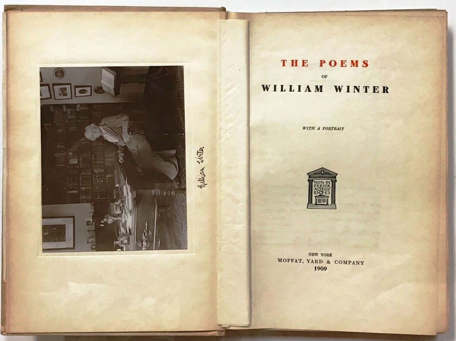 New York: Moffat, Yard & Company, 1909. First Edition. Hardcover. Partly unopened; soiling to covers. Very Good to Near Fine. Full parchment with a printed paper spine label. Copy #73 of 150, this copy for Ellen Francis Robinson, SIGNED by the author on the limitation page as well as under the tipped-in frontispiece which is an original photograph of Winter.