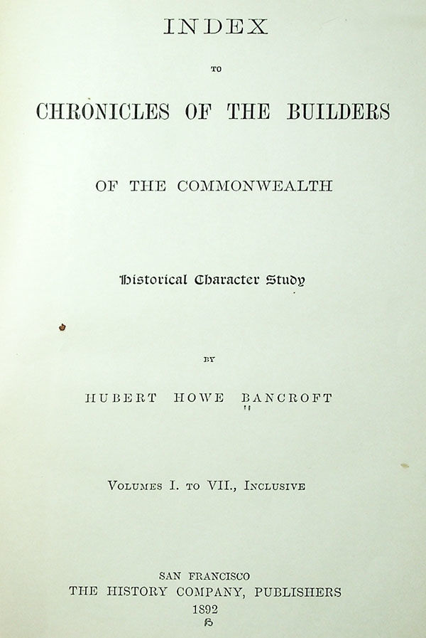 Index to Chronicles of the Builders of the Commonwealth: Historical Character Study. Volumes I. to VII. Inclusive [Index Volume Only]