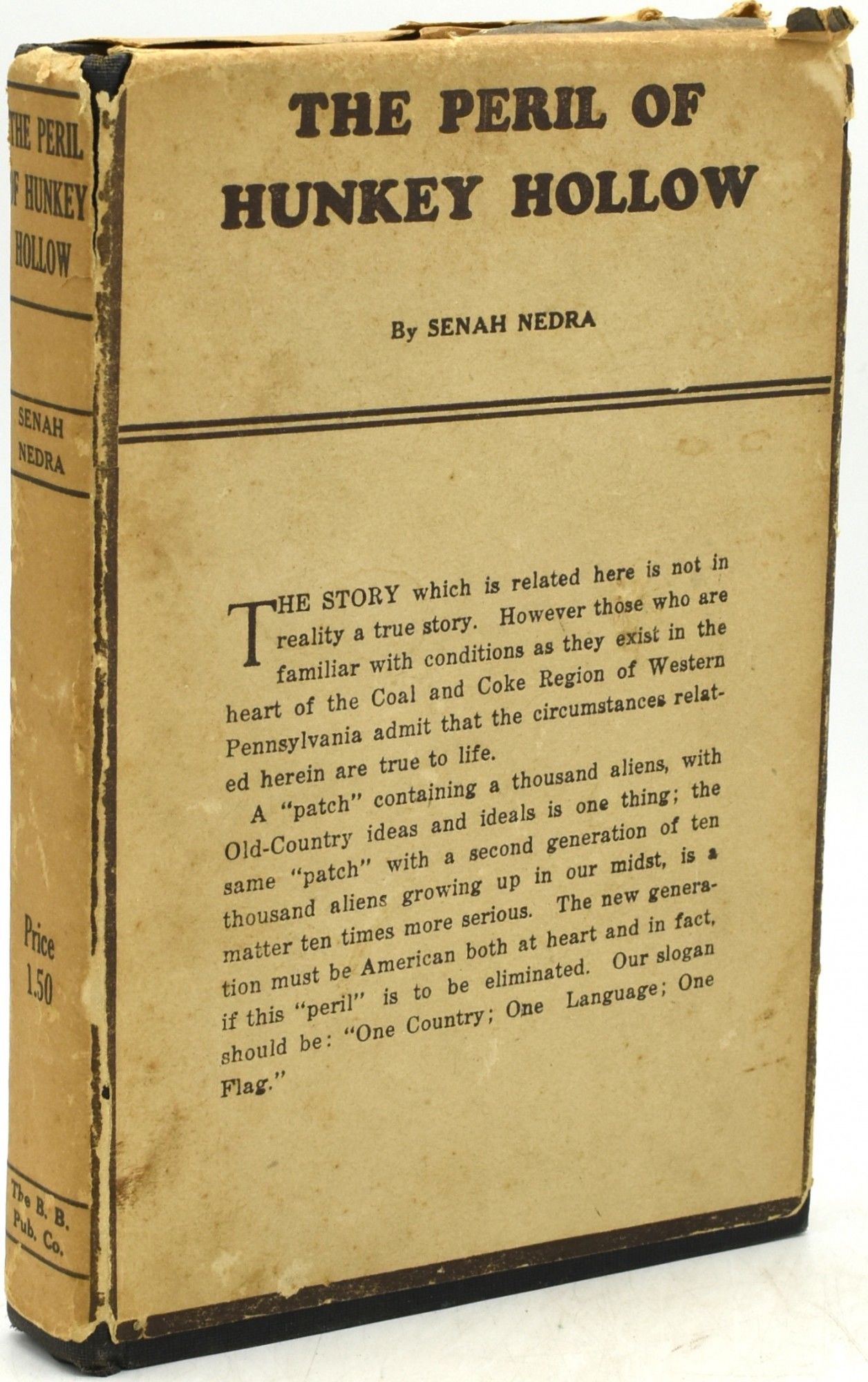 The Baptist Banner Publishing House, 1926. First Edition. Hard Cover. Very Good binding/Good dust jacket. 12mo.; in the publisher's blue cloth binding, with dustjacket; 173 pages; lacking the front free endpaper (perhaps someone did not want their name associated with this book); the dustjacket has modest wear at the extremities.~~An anti-immigrant screed of the worst sort, by the pastor of First Christian Church of Brownsville, Pennsylvantia. The word "Hunkey" was a derogatory term for Hungarian and the peril is the existence of places such as "Little Italy", "China Town" and of course "Hunkey Hollow". The author's closing observation in the Preface: "The new generation must be American, both at heart and in fact, if this "peril" is to be eliminated. Our slogan should be: "One Country; One Language; One Flag.". Very Good binding / Good dust jacket.