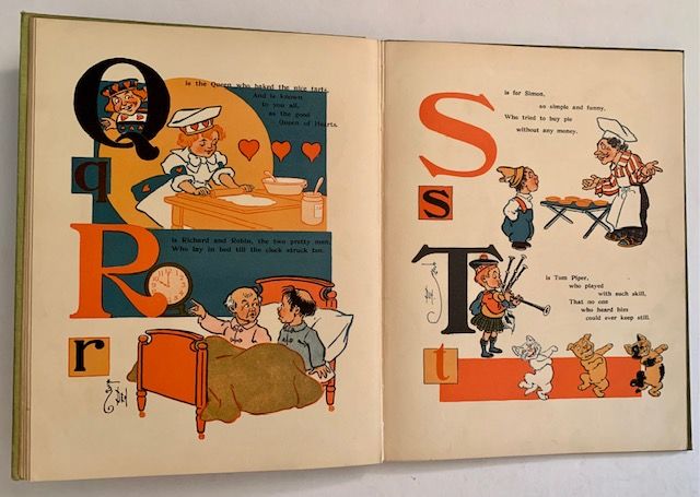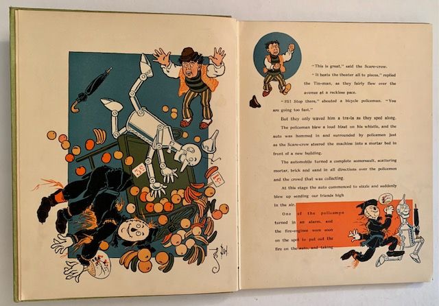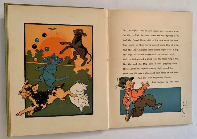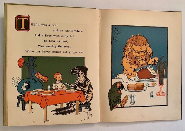 New York: G.W. Dillingham Publishers, 1904. Decorative Cloth. Very Good. W.W. Denslow. A solid, presentable copy of the 1904 1st edition. Tight and VG in its lime-green cloth, with lightly-chipped, mounted color plate and very light soiling to the front panel. Very mild chipping as well along the base of the front free endpaper. All the wonderful Denslow color plates (at least 1 per page) are crisp and bright and as clean as could be. Quarto, another Oz-related triumph from the maestro W.W. Denslow, the deep, rich color executed by the printers J.J. Little & Co. of New York.