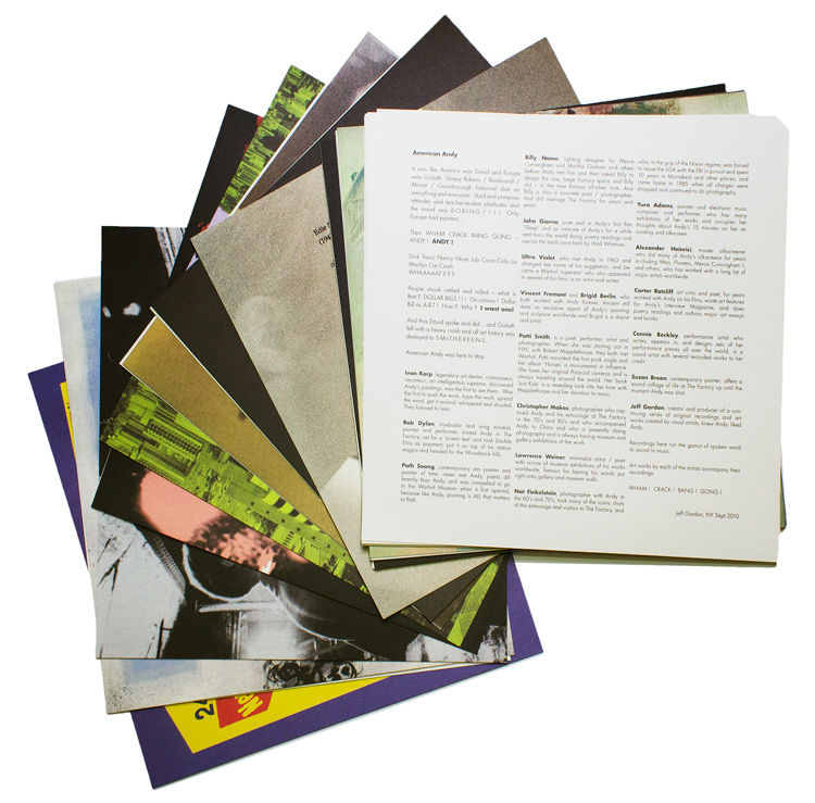New York: Wu-Shan Inc. and Sony Music Entertainment, 2011. First edition, trade issue. One of 1964 copies. Folio. Boards box, with printed label. Containing 4 leaves of text and contributors' photographs, 4 vinyl l.p. records, 3 compact discs, and sixteen 30 x 30 cm offset lithographs. Fine. First edition, trade issue. One of 1964 copies. Folio. The recordings, which are duplicated on the albums and CDs, feature audio conversations, songs, spoken word performances, and sound experiments from various contributors along with a recording from Ivan Karp.