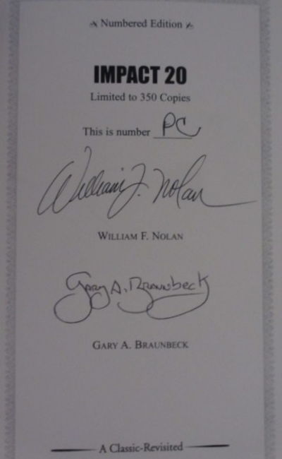 Pennsylvania: Edge Books, 2002. First Edition. Hard Cover with Dust Jacket. Fine/Fine. Octavo. #PC of 350 copies, signed by William F. Nolan and Gary Braunbeck on the limitation page. With a drawing by Mr. Nolan on the FFEP. Introduction and Afterword by Ray Bradbury. Preface by Gary A. Braunbeck. As new.