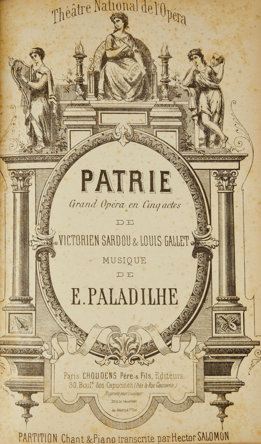 Patrie Grand Opéra en Cinq actes de Victorien Sardou & Louis Gallet ... Théâtre National del'Opéra ... Partition Chant & Piano transcrite par Hector Salomon. [Piano-vocal score]