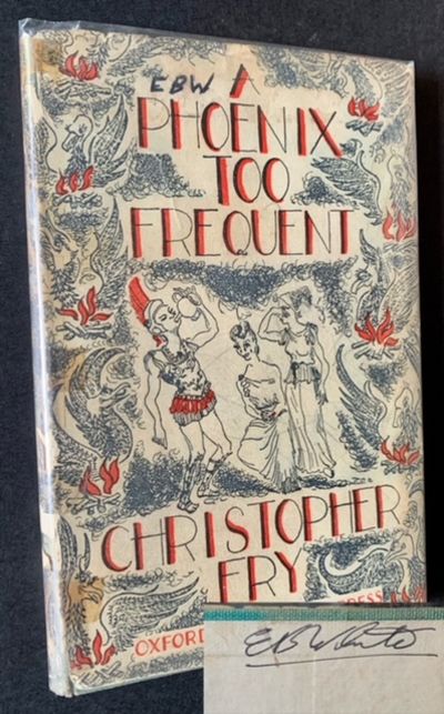 London: Oxford University Press, 1953. Cloth. Very Good/Very Good. EB White's heavily annotated copy of Christopher Fry's "A Phoenix Too Frequent". White's initials (in bold ink) at the top of the dustjacket's front panel and also his full name written at the top of the front pastedown. The book is heavily underlined, with margin notes thruout (in ink and pencil) in EB White's hand. And more notes spill onto the verso of the rear free endpaper. Based on the extent of the marginalia, it's clear this copy was read carefully and loved by the author of "Charlotte's Web" and "Stuart Little". 1953 sixth impression. VG in a bright, price-clipped, VG dustjacket, with light loss and discrete tape along the spine. 12mo, 43 pgs.