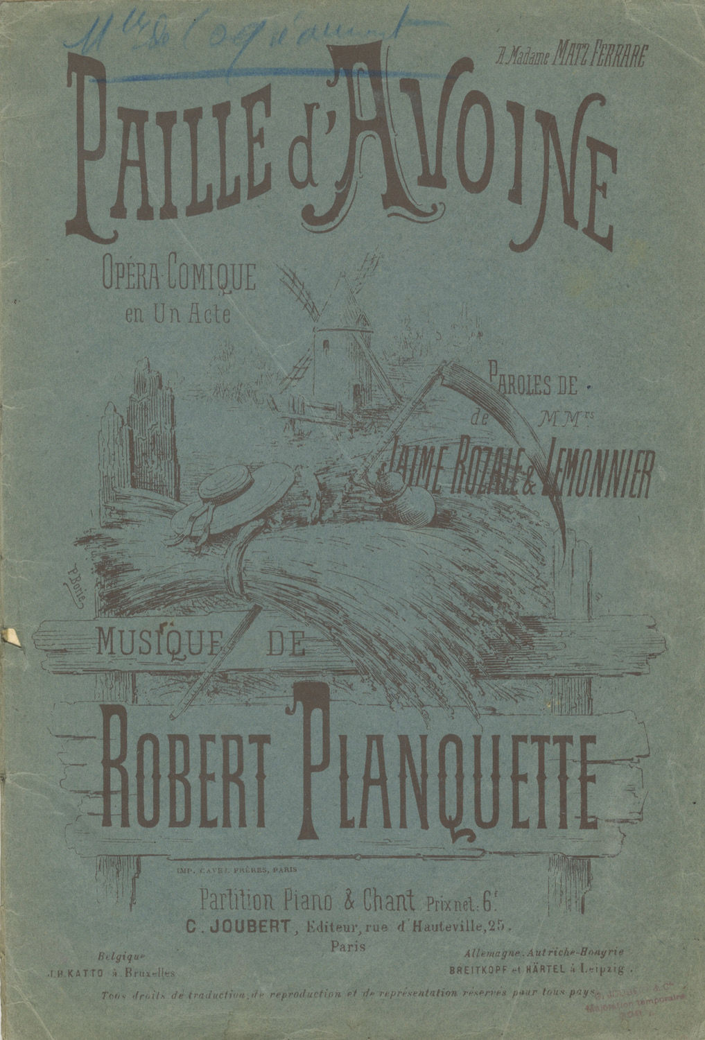 Paille d'Avoine Opéra-Comique en Un Acte Paroles de ... MMrs. Jaime Rozale & Lemonnier ... Partition Piano & Chant. Prix net: 6 f. ... A Madame Matz Ferrare. [Piano-vocal score]