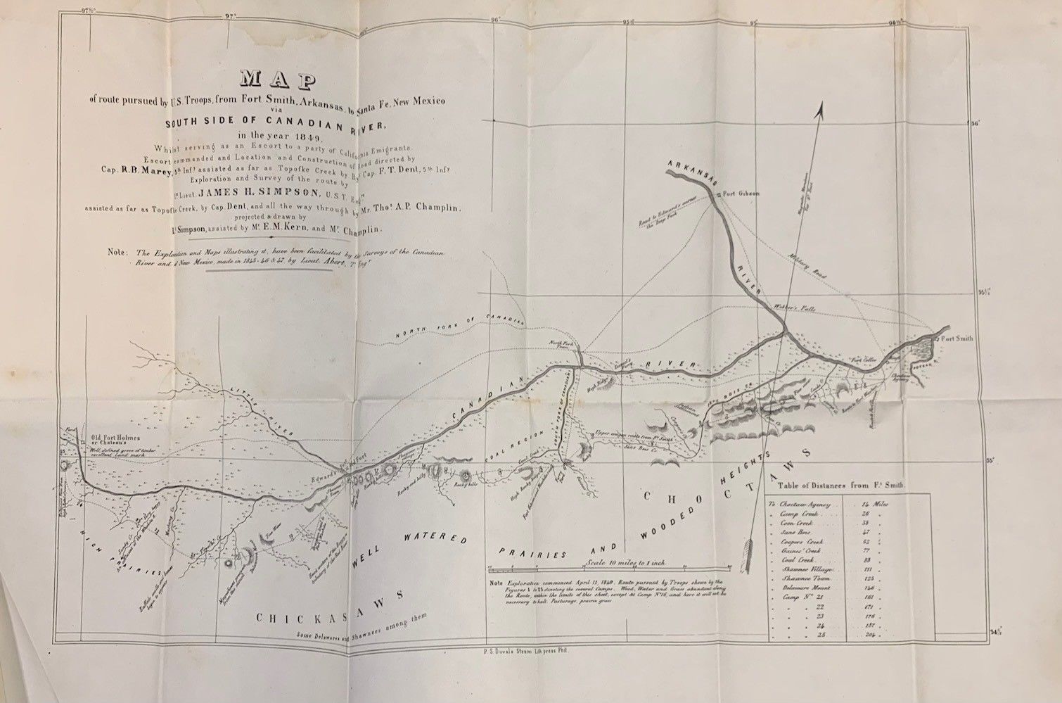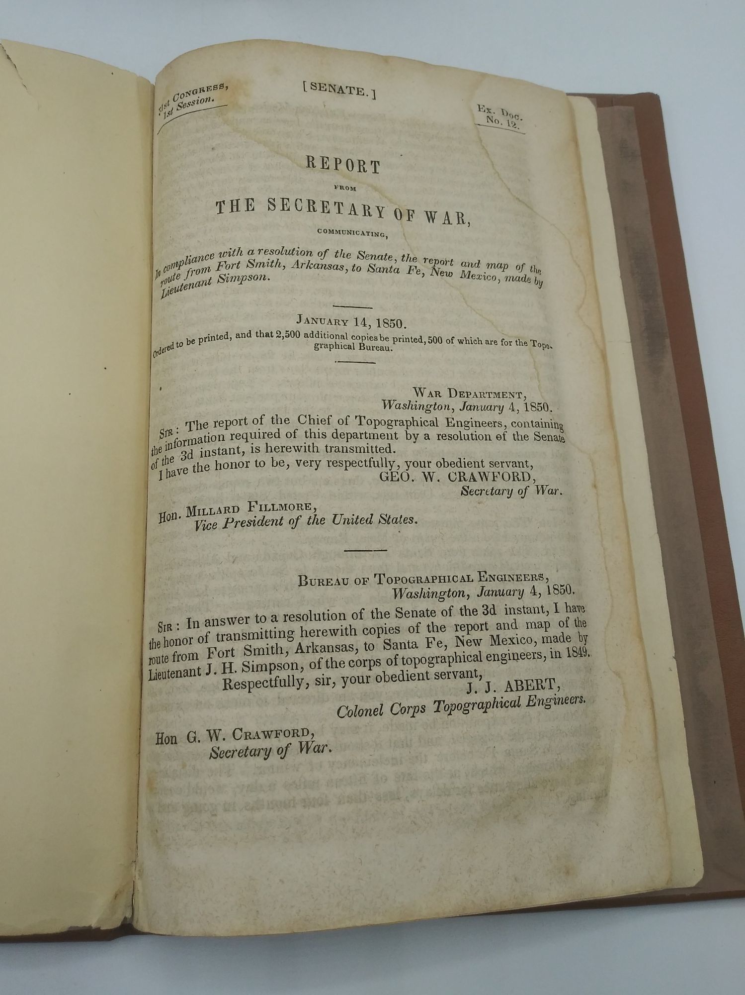 Report from the Secretary of War, communicating, in compliance with a resolution of the Senate, the report and map of the route from Fort Smith, Arkansas, to Santa Fe, New Mexico, made by Lieutenant Simpson. 31st Congress, 1st Session. Senate. Ex. Doc. No. 12