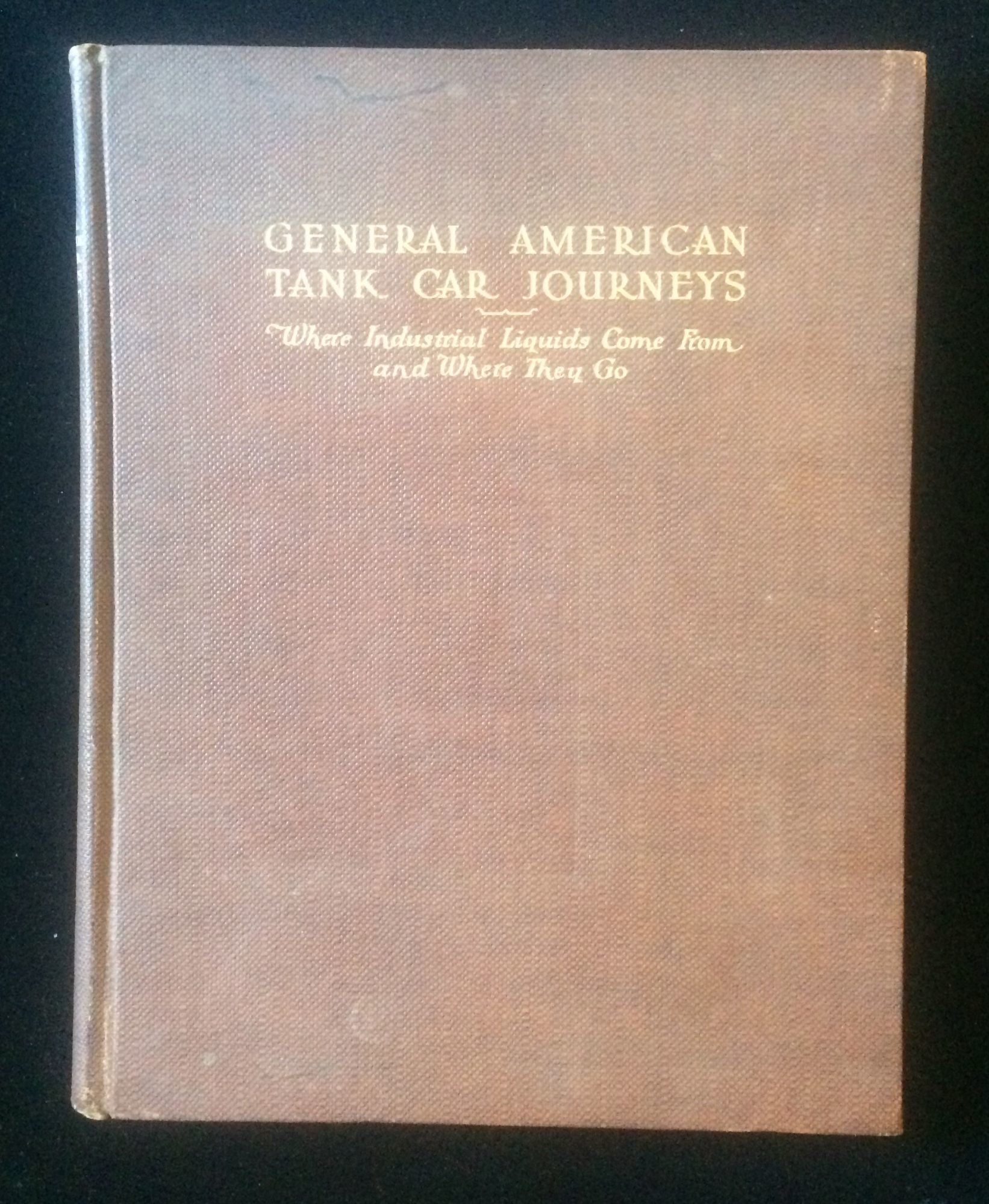 Chicago: General American Tank Car Corporation, 1931. 1st Edition. Hardcover. Near Fine. Trade publication promoting the railroad tank car and ist consequence to the US economy. Identifies all chemical (and some foodstuff liquids) and how the tank car enables by way of safe, speedy transportation the products and commodities it delivers. 4to, brown patterned pebbled cloth, gilt titles, 189p, illustrated with charts, graphs and b&w images, plus some striking ArtDeco chapter title vignettes. Uncommon railroad item.