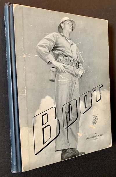 Columbia, South Carolina: Bostick & Thornley, 1943. Pictorial boards. Very Good +. Cpl. Edward J. Freeman & Pfc. John H. Birch, Jr.. A fascinating one-of-a-kind copy of the 1943 1st edition. WITH A DECEMBER 7TH, 1943 (2 YEAR ANNIVERSARY OF PEARL HARBOR) FULL-PAGE INSCRIPTION ON THE FRONT FREE ENDPAPER BY CORPORAL ROBERT E. ALBRECHT OF THE U.S. MARINE CORPS TO "CONNIE", ENCOURAGING HER TO READ THRU TO GET AN UNDERSTANDING OF WHAT LIFE ON PARRIS ISLAND IS LIKE FOR THE NEW RECRUITS. CPL. ALBRECHT FURTHERMORE GIVES A HANDWRITTEN, RUNNING COMMENTARY THRUOUT TO THIS COPY, ESSENTIALLY OFFERING CONNIE (AND NOW US) AN INSIDER'S TAKE AND A BEHIND-THE-SCENES LOOK AT THE ACTUAL DAY-TO-DAY TRAINING. A very solid copy to boot. Tight and VG+ in its wonderful pictorial boards, with very light scuffing to the panels and just a bit of wear along the top and fore-edges. Quarto, crisp, high-quality black-and-white photos thruout by Cpl. Edward Freeman and Pfc. John Birch, Jr.