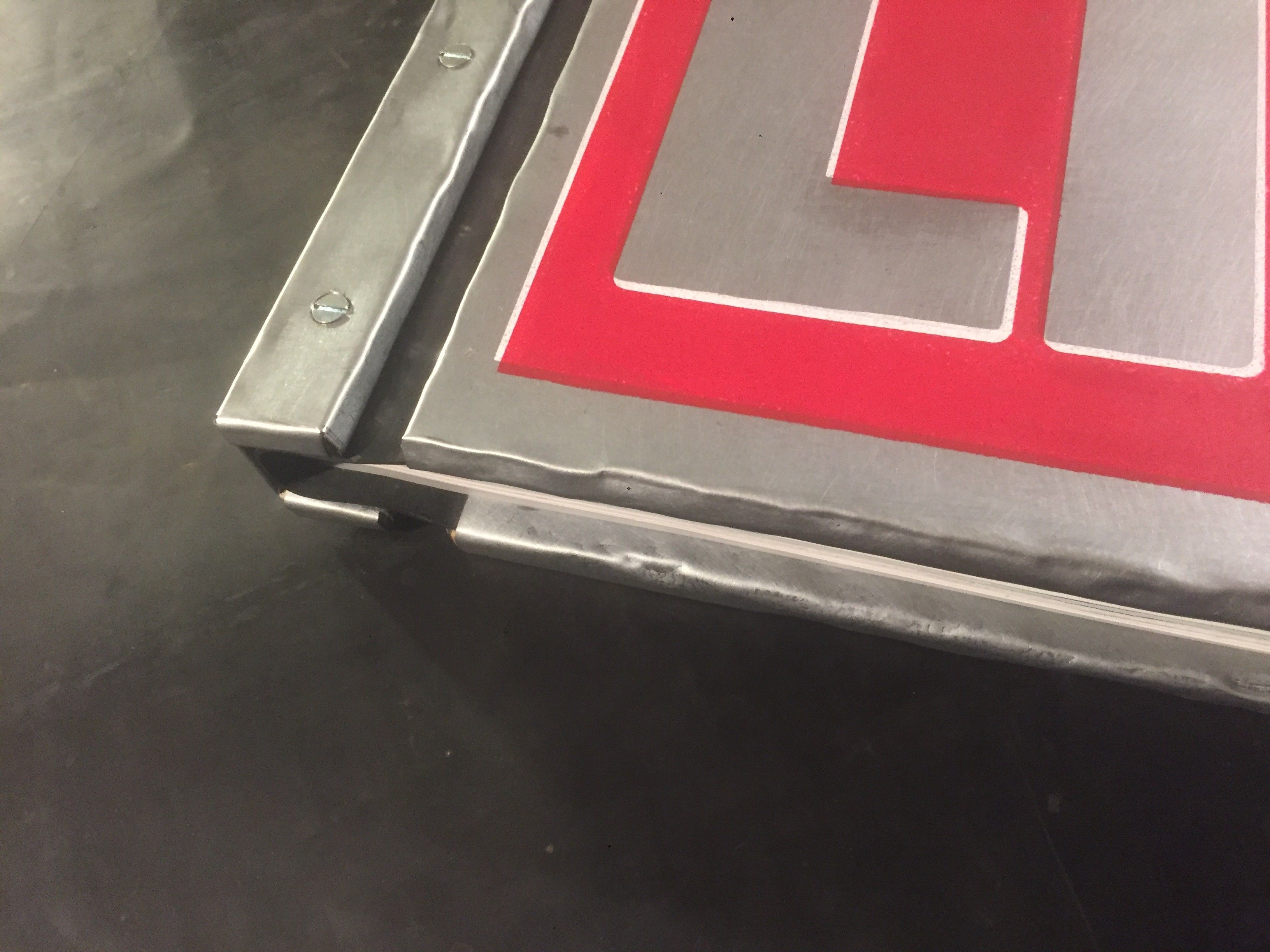 JOSSELIN ACTERE “WTR”. Tight, bright, and unmarred. Full embossed metal binding, red ink, plywood boards, post-bound, rubber hinges. 21x24x2" [25 pounds]. 36pp of text, 65 silkscreened images. Illus. (color and b/w plates). All posters signed by the artists. Numbered limited edition of 50 copies.