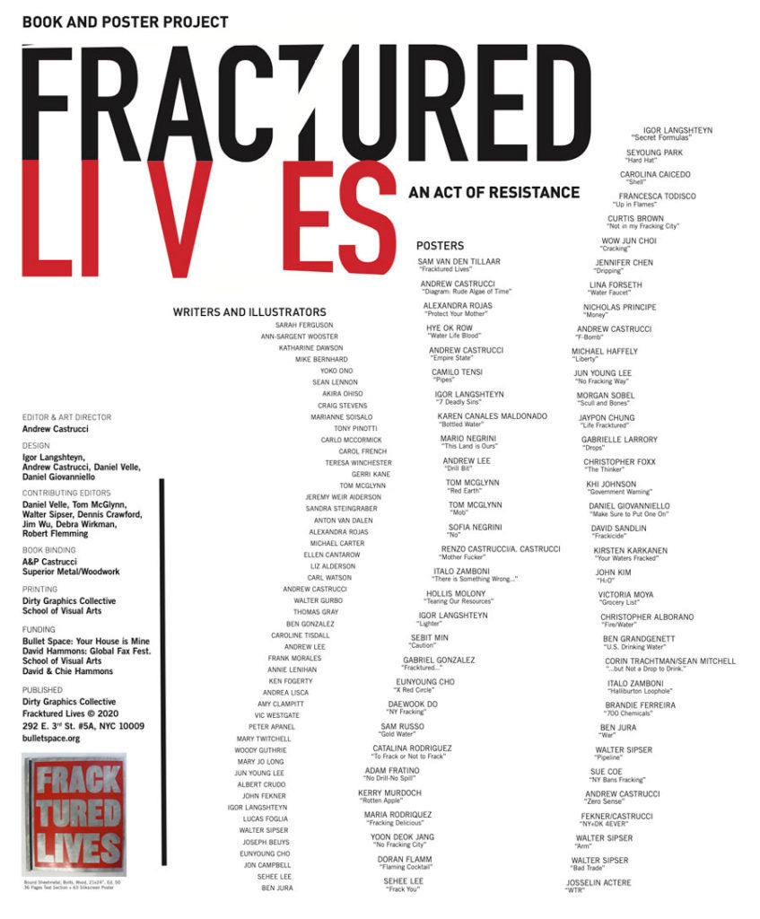 New York: Bulletspace, 2021. Limited Edition. Hardcover. Fine in Fine Rubber Wrapper. Limited Edition. Hardcover. It took nearly a decade to bring this remarkable urban/rural art project to fruition. 177 artists, writers, and fracktivists contributed between 2010 and 2020. Contributors are listed below but notably include: John Fekner, Anton Van Dalen, Sue Coe, David Sandlin, Tom McGlynn, Yoko Ono, Ellen Cantarow, Alexandra Rojas, Mike Bernhard, Carlo McCormick, Woody Guthrie, and many others.