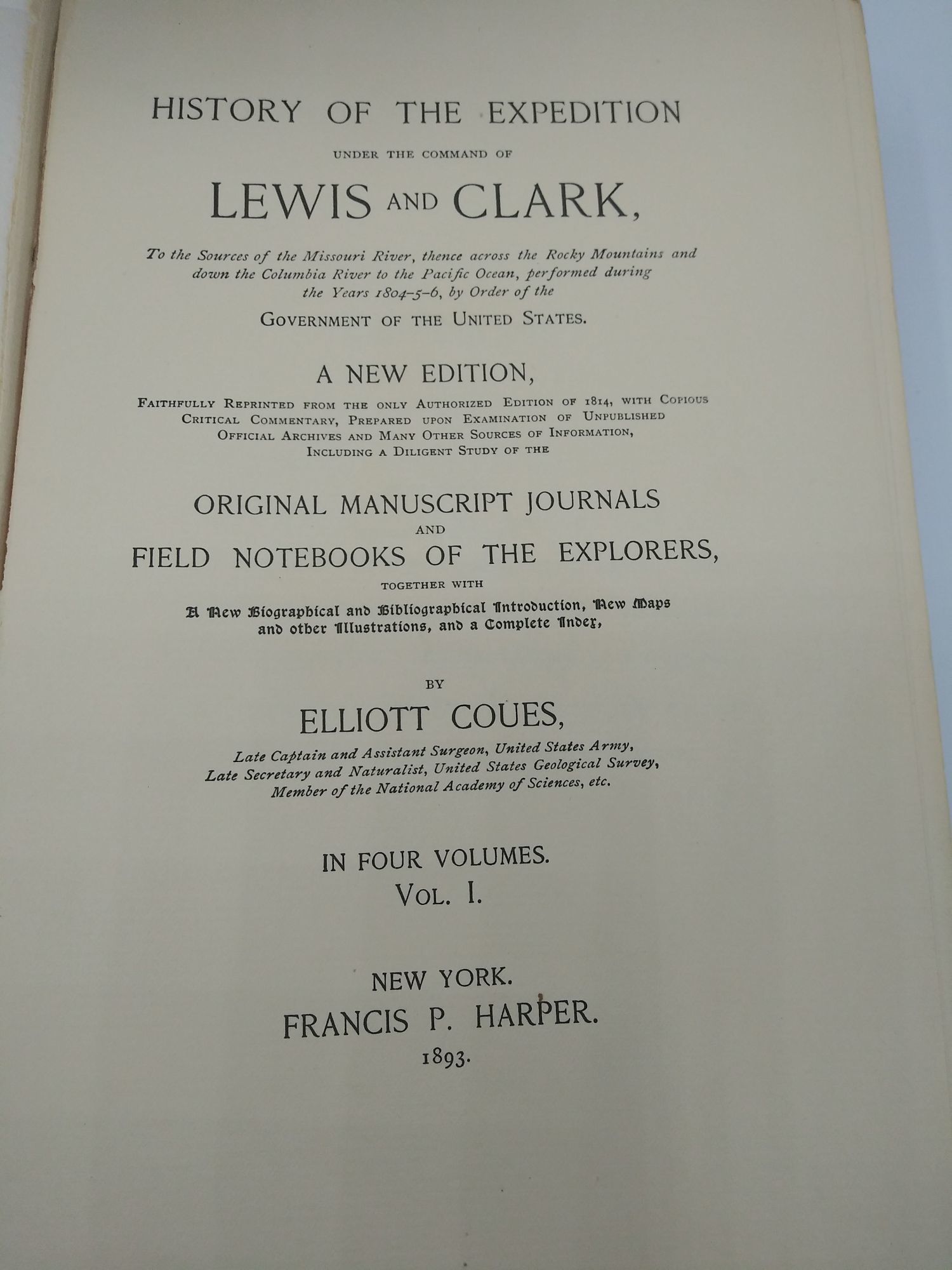 History of the Expedition under the Command of Lewis and Clark, To the Sources of the Missouri River, thence across the Rocky Mountains and down the Columbia River to the Pacific Ocean, performed during the Years 1804-5-6, by Order of the Government of the United States. Original Manuscript Journals and Field Notebooks of the Explorers, Together with A New Biographical and Bibliographical Introduction, New Maps and Other Illustrations, and a Complete Index- 4 volumes (Lewis and Clark's Expedition)