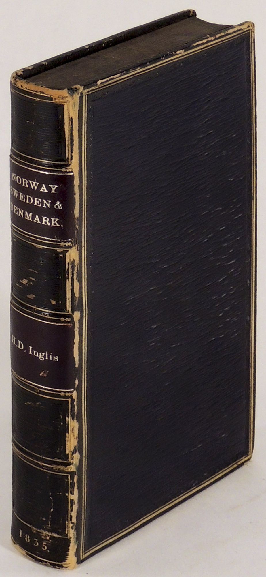 London: Whittaker & Co, 1835. Very Good. Henry David Inglis, (1795–1835) who used the pseudonym Derwent Conway,was a Scottish travel writer and journalist. Under the name of Derwent Conway, Inglis published his first work, Tales of the Ardennes (1825), which was well received. There followed in quick succession Narrative of a Journey through Norway, part of Sweden, and the Islands and States of Denmark (1826), Solitary Walks through many Lands (1828), and A Tour through Switzerland and the South of France and the Pyrenees (1830 and 1831). Of his journeys through Spain and the Tyrol in 1830 and following years, he published accounts, Spain in 1830 appearing in 1831, and The Tyrol, with a Glance at Bavaria, in 1833 [Wikipedia]. This is a reprint of Inglis's book on Norway that first appeared in Constable's Miscellany and is the first to be published using his real name. Bound in dark blue leather with gilt rulings and gilt titling labels to spine. Scuffed and rubbed along joints and edges of covers. Interior pages are generally clean with occasional spotting. Fold out map of region is intact with some light browning and offsetting to facing page. A plate of Specimens of Norwegian Music is quite foxed and has offsetting to facing page. Book plate of Richard Shuttleworth Streatfield. Very good condition. 7.5 inches. 335 pages. TRAVEL/071421.