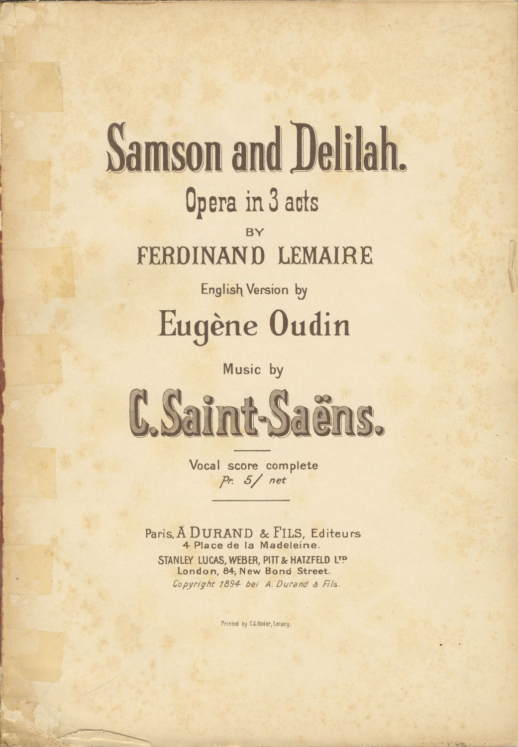 Samson and Delilah. Opera in 3 acts by Ferdinand Lemaire English Version by Eugène Oudin ... Vocal score complete Pr. 5/ net. [Piano-vocal score]