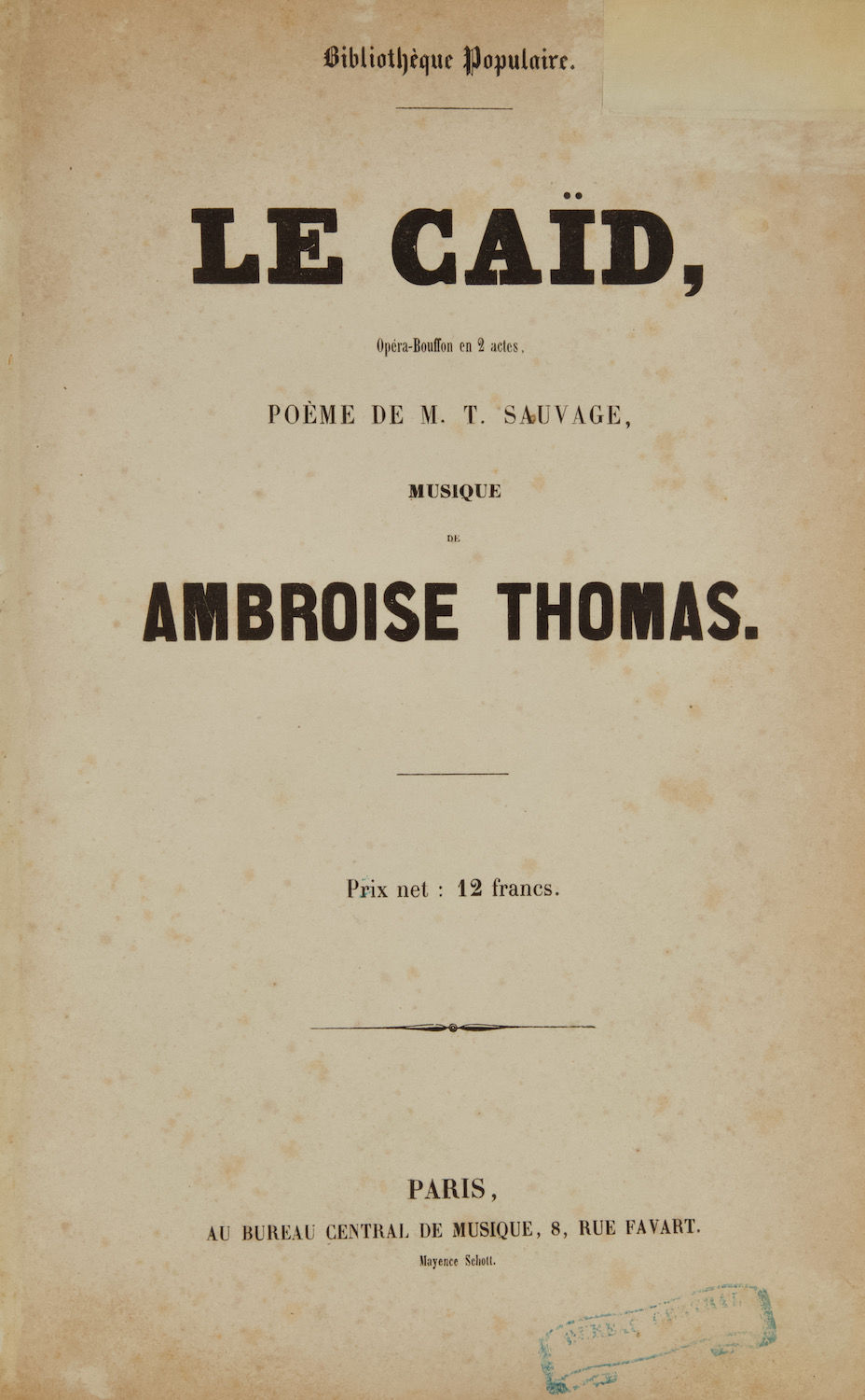 Le Caïd, Opéra-Bouffon en 2 actes, Poème de M. T. Sauvage ... Bibliothèque Populaire ... Prix net: 12 francs. [Piano-vocal score]