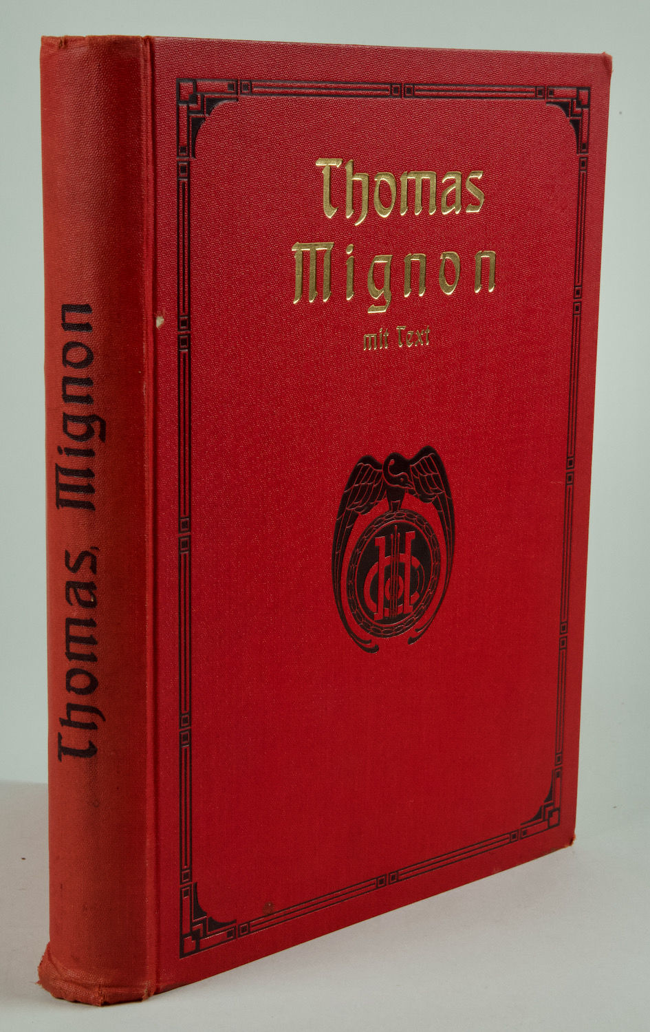 Paris: Au Ménestrel [PN 3607], 1912. Large octavo. Original publisher's full dark red decorative cloth with blindstamping in black and gilt, titling black to spine, decorative endpapers. 1f. (recto decorative half title, verso blank), 1f. (decorative title, verso blank), 1f. (recto cast list and contents, verso blank), [1] (blank), 2-417, 384bis-386bis pp. Text in German and French.