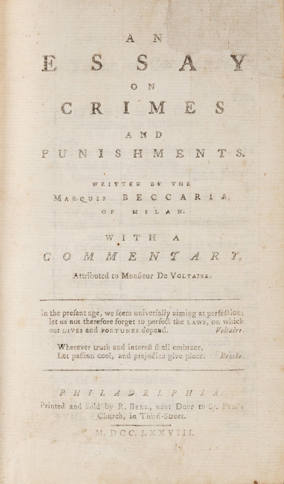 An Essay on Crimes and Punishments. Philadelphia: R. Bell, 1778