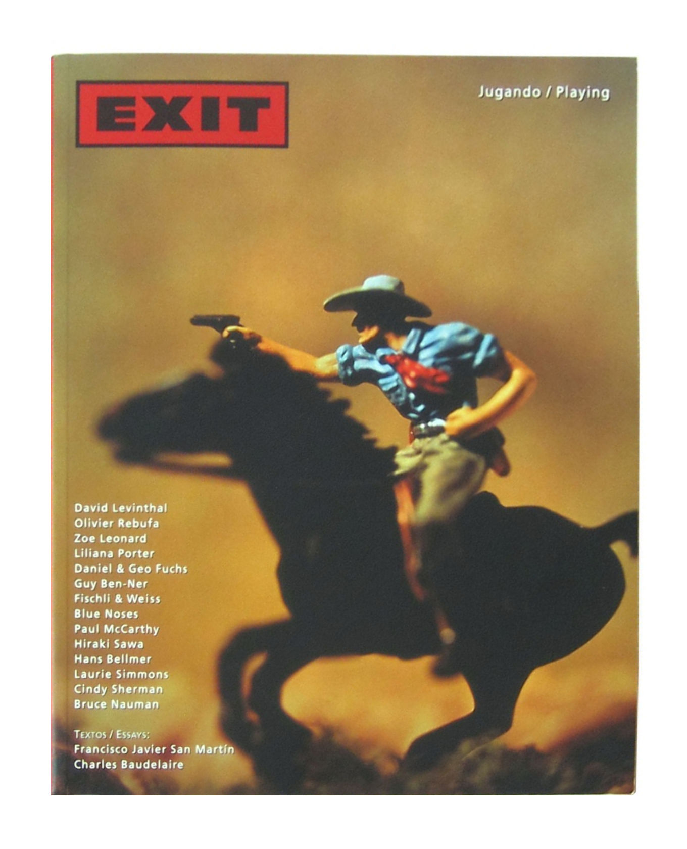 In this 25th issue of Exit—Madrid's preeminent photography quarterly, founded in 1999 and still going handsomely strong in 2021—the act of playing, in art, through art, and for art, is featured in the works of Doug Aitken, Alice Anderson, Xoán Anleo, Hans Belimer, Guy Ben-Ner, Blue Noses, Ignacio Evangelista, Fischli & Weiss, Daniel & Geo Fuchs, Gelitin, Félix González-Torres, Christian Jankowski, Mike Kelley, Ellen Kool, Brandon Lattu, Zoe Leonard, David Levinthal, Walter Martin & Paloma Muñoz, Paul McCarthy, Brian McCarty, Duane Michals, Joachim Mogarra, Bruce Nauman, Gabriel Orozco, Liliana Porter, Olivier Rebufa, Moira Ricci, Hiraki Sawa, Cindy Sherman, Laurie Simmons, Slinkachu, and Jeff Wall.