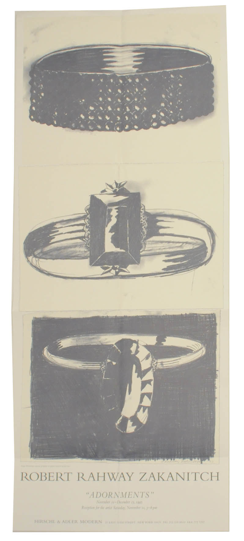 New York: Hirschl & Adler Modern, 1995. First edition. Promotional poster for an exhibition that ran November 11 through December 23, 1995. Measures 16" wide by 39.5" high when open. A near fine copy that has been machine folded four times and has some light creasing to the top edge. Uncommon.