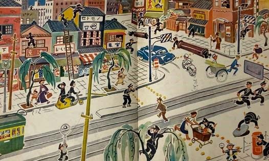 Tokyo, Japan: Seihei Okuyama, 1953. Hard Cover. Good/No Jacket. 0x0x0. Huga, Fusako. Spine and board edges rubbed, one-and-a-half inch tear along bottom edge of front free endpaper. 1953 Hard Cover. 38 pp. Color and monochrome illustrations by Fusako Huga, brightly decorated endpapers. Only two copies located in OCLC. "Designed for children from four years of age to about 10, its authentic scenes of Japan and its people will both interest and educate... An amusing, refreshing and heart-warming story about two little Budgies who are visiting Japan with their Mistress, a charming old lady."--Buchfreund