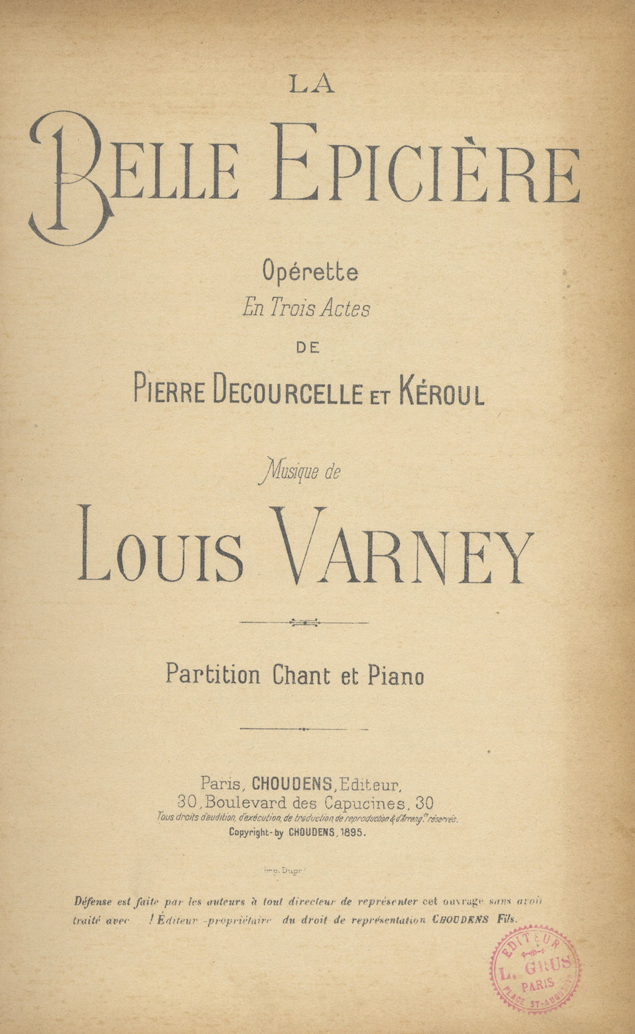 - Paris: Choudens [PN A. C. 10091], 1895