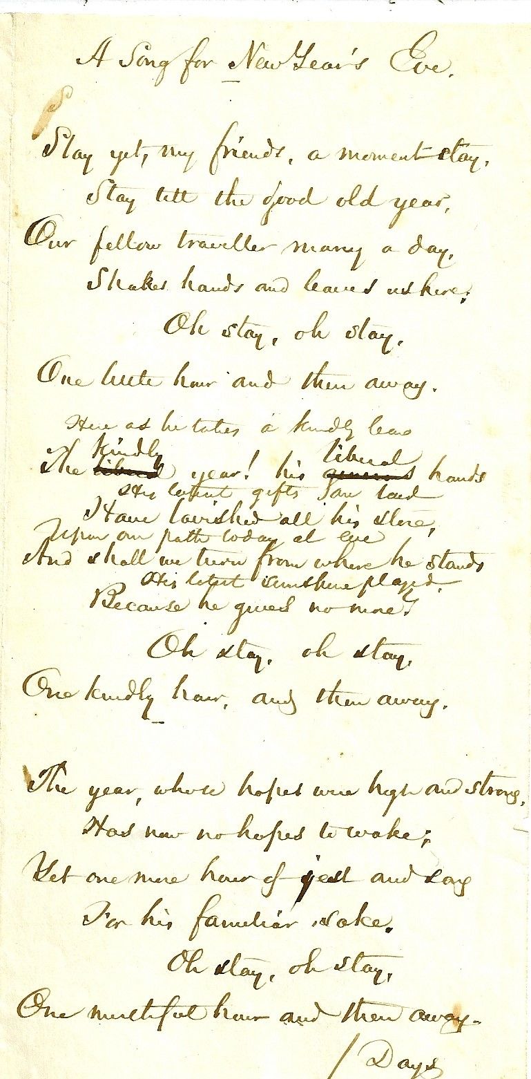 AUTOGRAPH MANUSCRIPT SIGNED (AMS): "A Song for New Year's Eve"