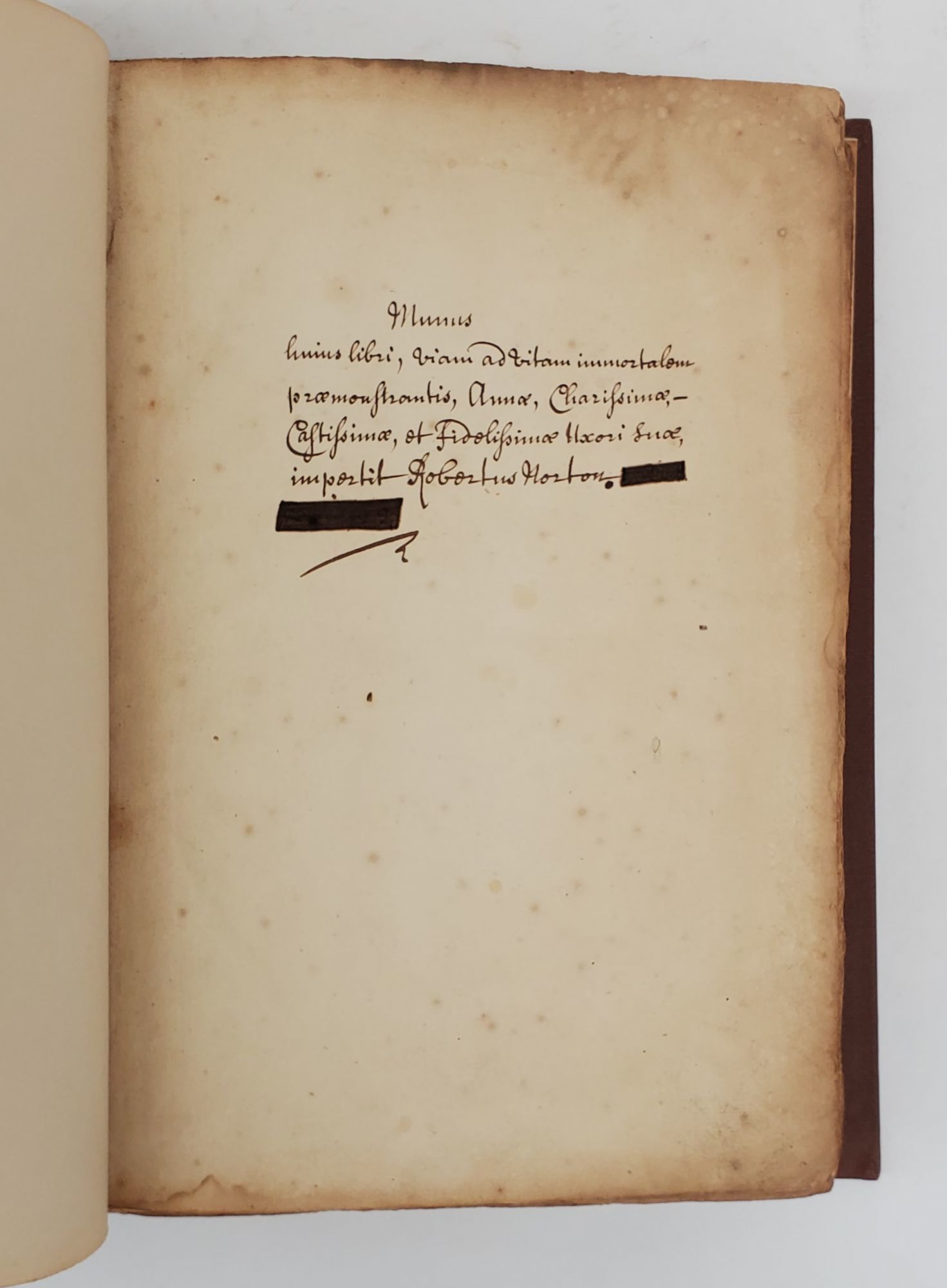 [Oversized item(s). Will require additional postage for expedited/international orders. Economy international shipping unavailable due to size/weight restriction(s). Contact seller for additional information.]. ESTC R16130; Wing T343; Gift inscription on front free endpaper reading "Munus huius libri, viam ad vitam immortalem praemonstrantis, Annae, Charissimae,--Castissimae, et fidelissimae Uxori suae, impertit Robertus Norton" ["The office of this book is to point the way to immortal life, for Anna, his most dear, chaste, and faithful wife, bestowed by Robert Norton"]. 1345549. Special Collections.