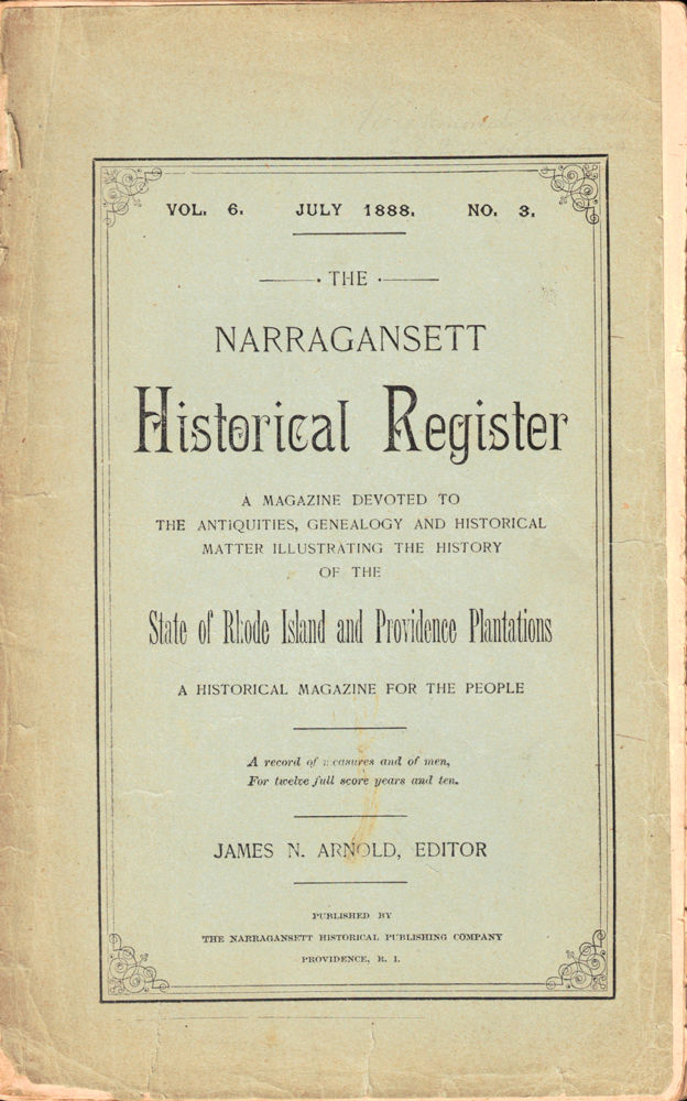 The Narragansett Historical Register Volume Six July 1888 Number Three