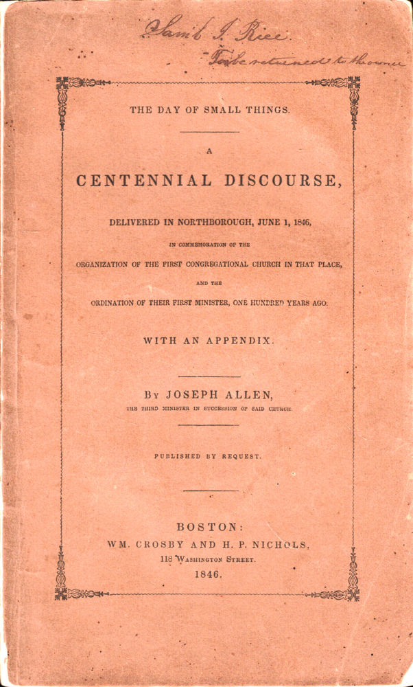 The Day of Small Things: A Centennial Discourse, delivered In Northborough, June 1, 1846