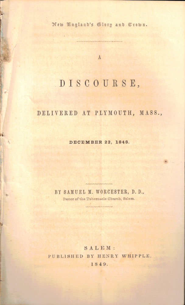 New England's Glory and Crown: A Discourse Delivered At Plymouth, Mass., December 22, 1848