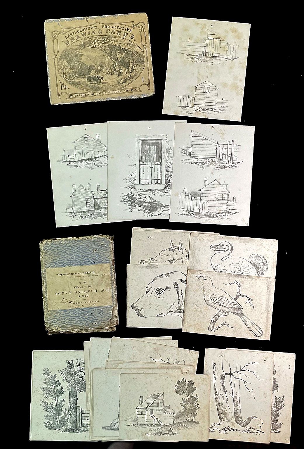 Coe's New Drawing Cards for Schools, No. 6. D.Appleton & Co. NY. 1860s. A series of 18 cards (animals and landscape) Card 1 including instructions are lacking.