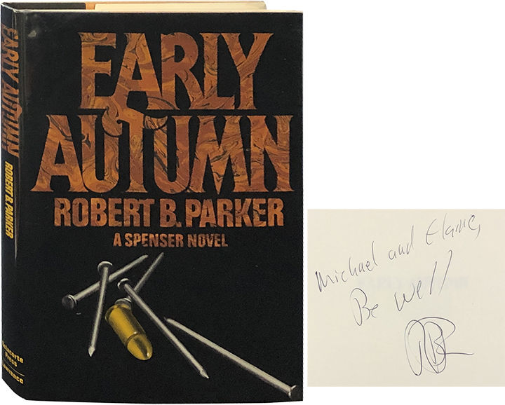 New York: Delacorte Press, 1981. Uncorrected Proof. Hardcover. Fine/Fine. Inscribed by Parker on the front endpaper . Fine in a Fine jacket, unclipped ($10.95). Quarter black cloth with orange paper on the boards. Square and firmly bound, clean internally. The seventh Spenser novel, winner of the inaugural Maltese Falcon Award.