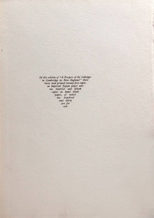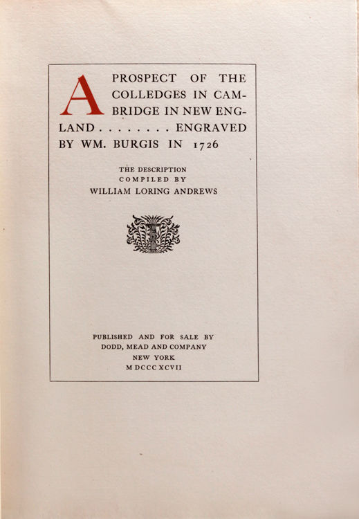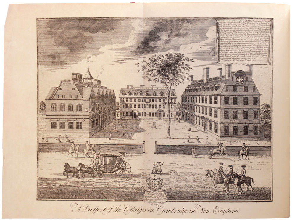 A Prospect of the Colledges in Cambridge in New England. Engraved by William Burgis in 1726. The Description compiled by William Loring Andrews