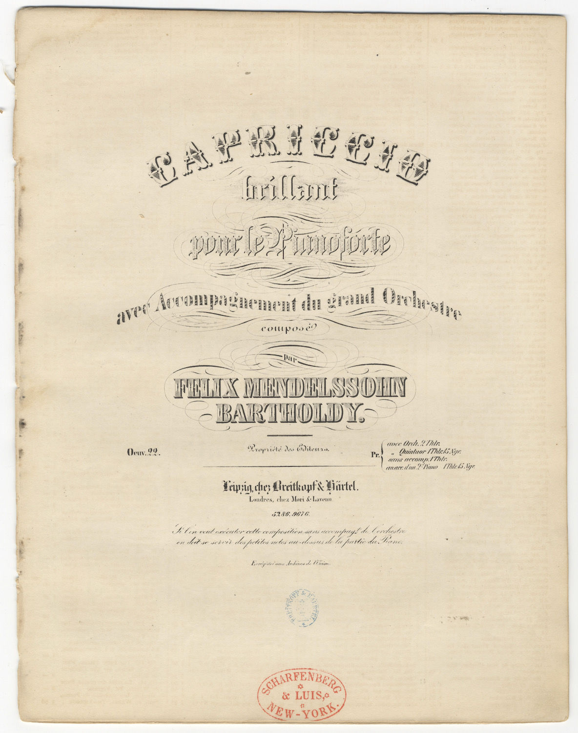Small oval publisher's stamp and Scharfenberg & Luis New York musicseller's stamp to foot of title.