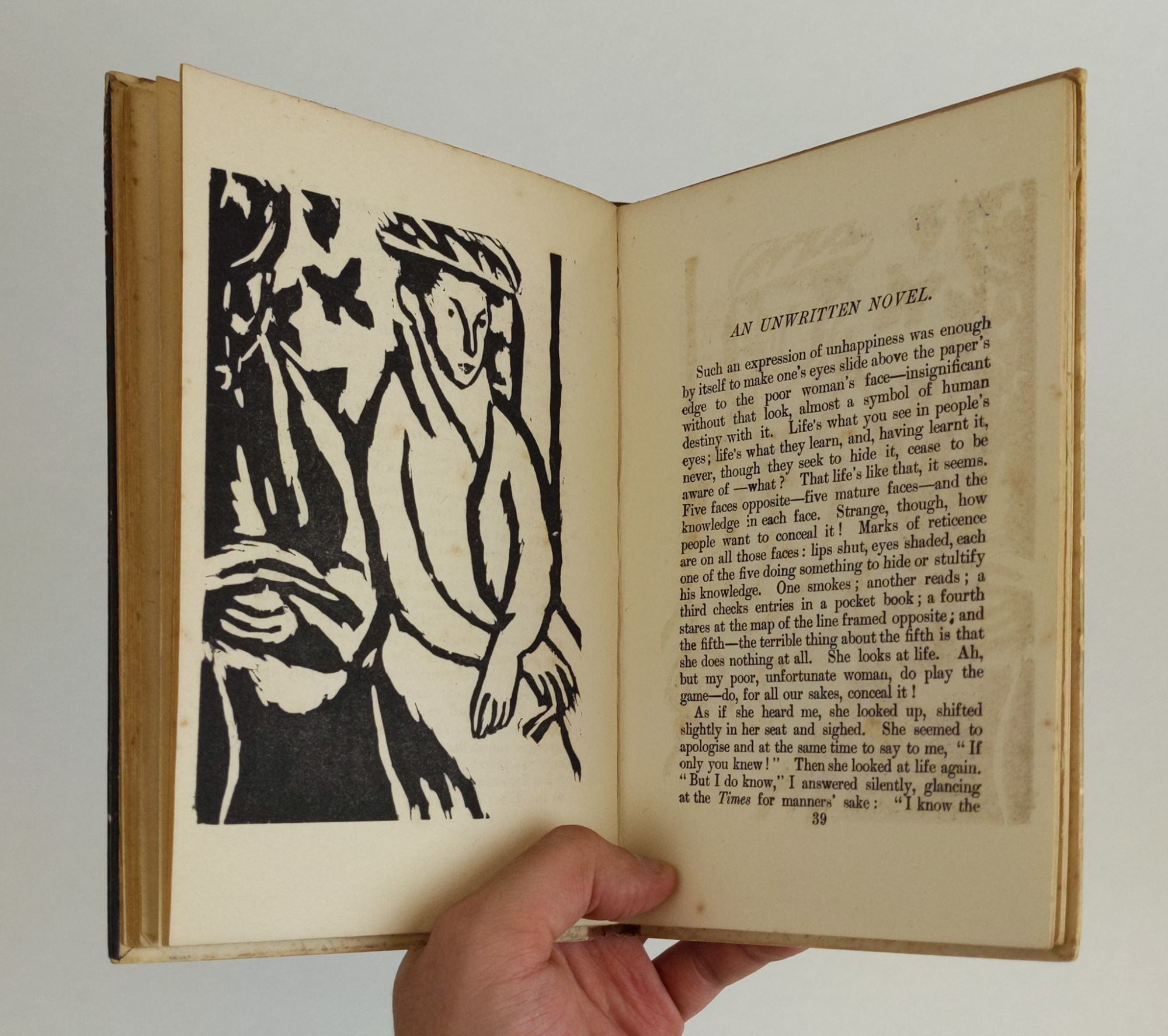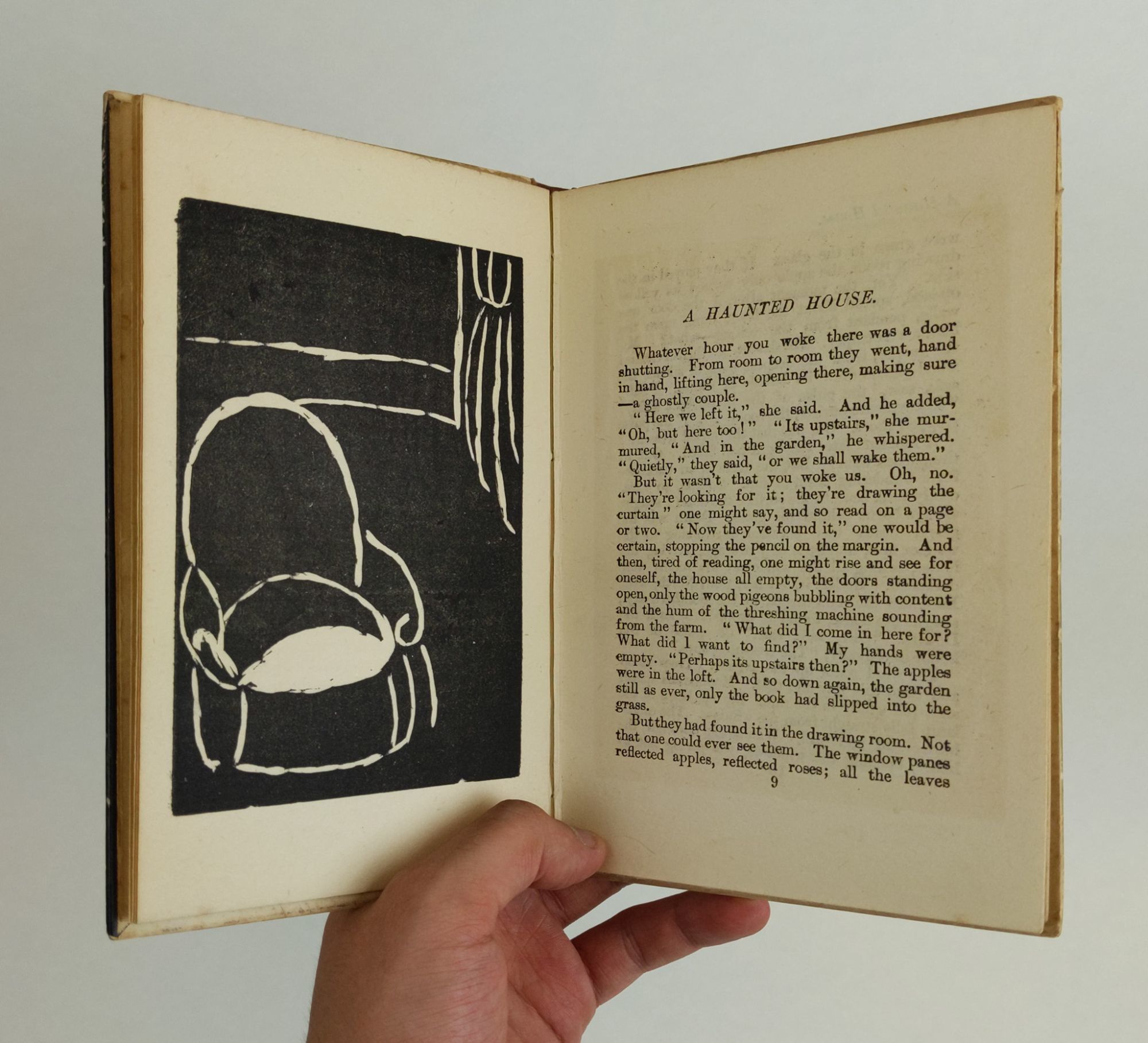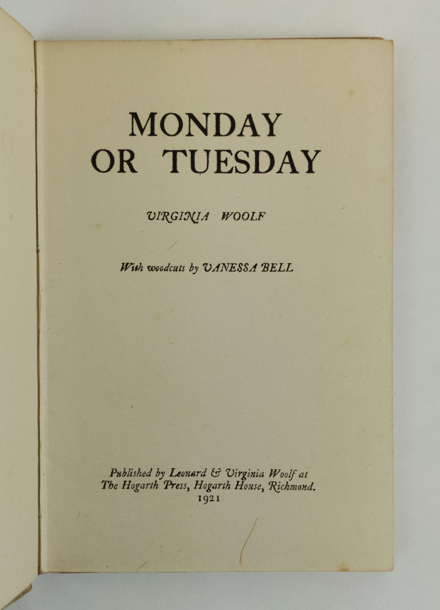 [London]: The Hogarth Press, 1921. First Edition, 1/1000 Copies. Hardcover. Octavo, 91, [3] pages. In Very Good condition. Bound in publisher's brown cloth with paper boards. Binding shows very mild wear and rubbing, along with light foxing to extremities. An advertisement leaf at end. Illustrated with four original woodcuts by Vanessa Bell. CX Consignment. Shelved in Case 4. 1346202. Shelved Dupont Bookstore.