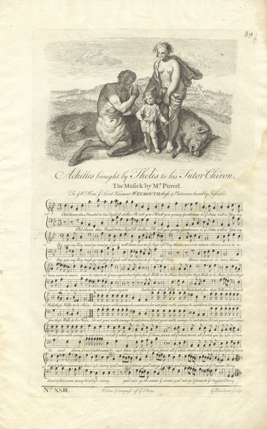 Achilles brought by Thelis to his Tutor Chiron. The Music by Mr. Purcel[!]. Plate 89 from George Bickham's The Musical Entertainer