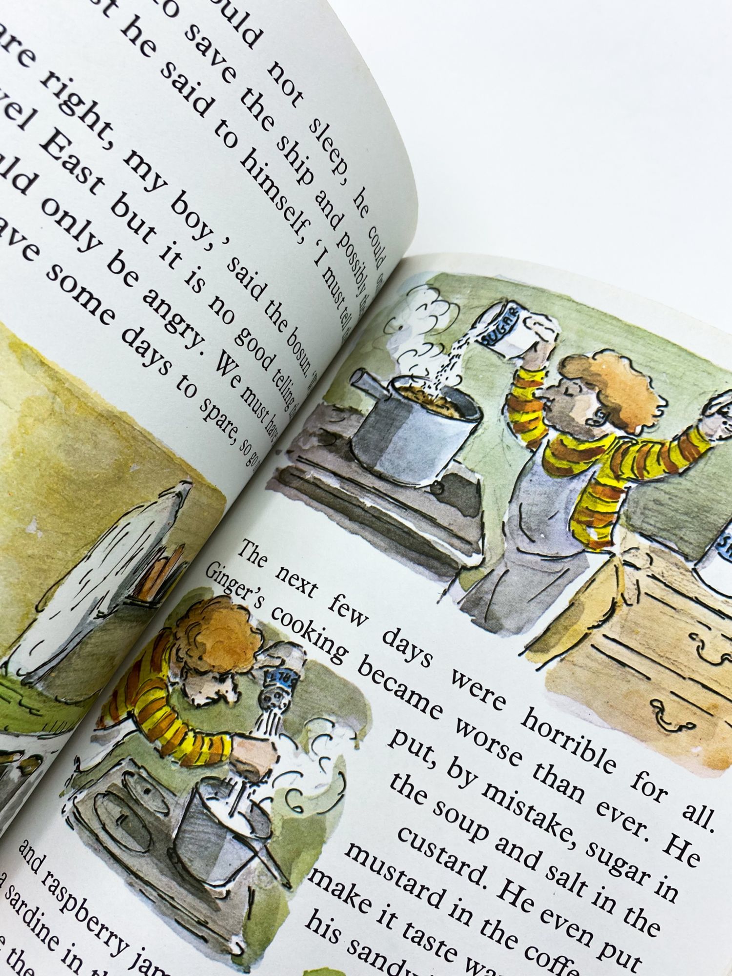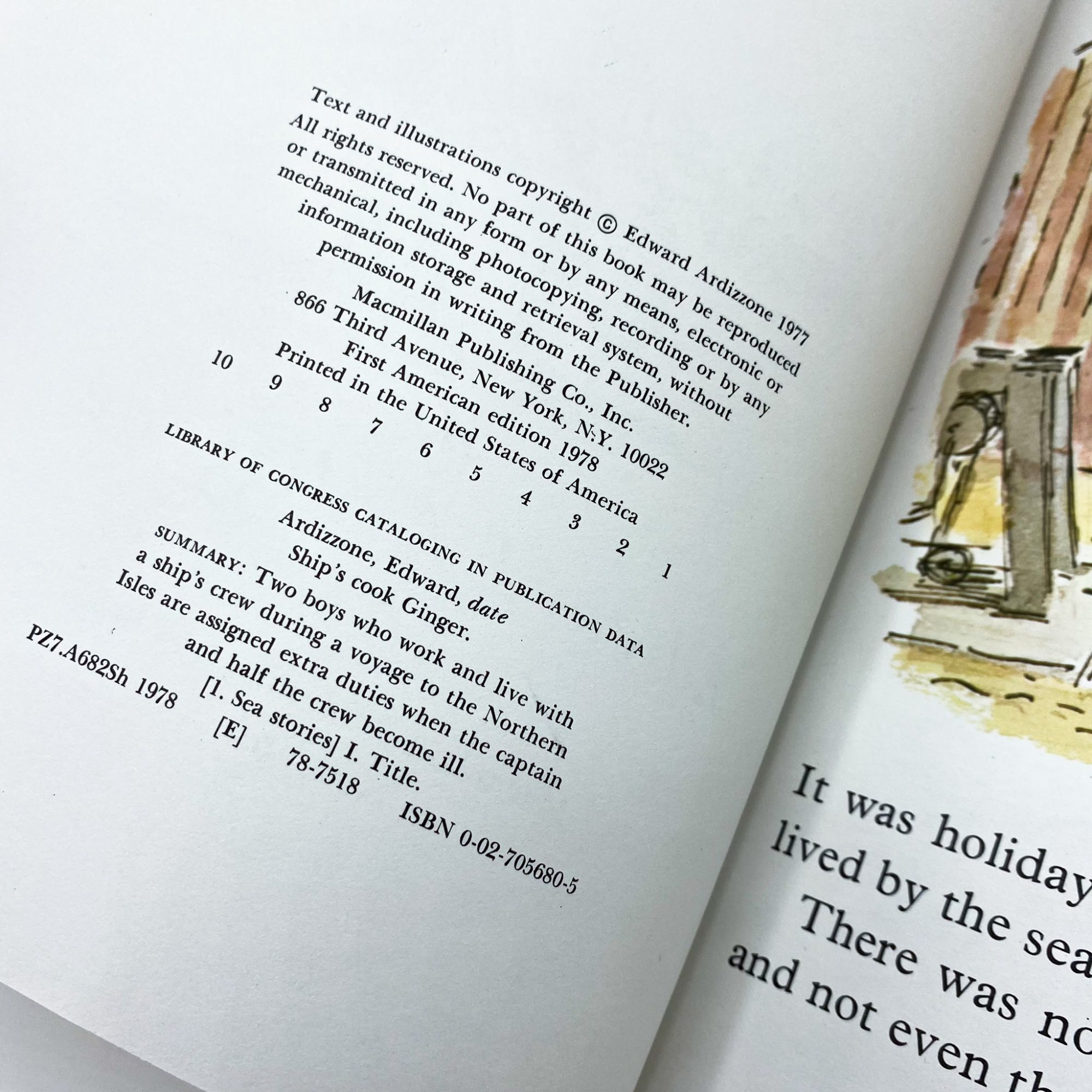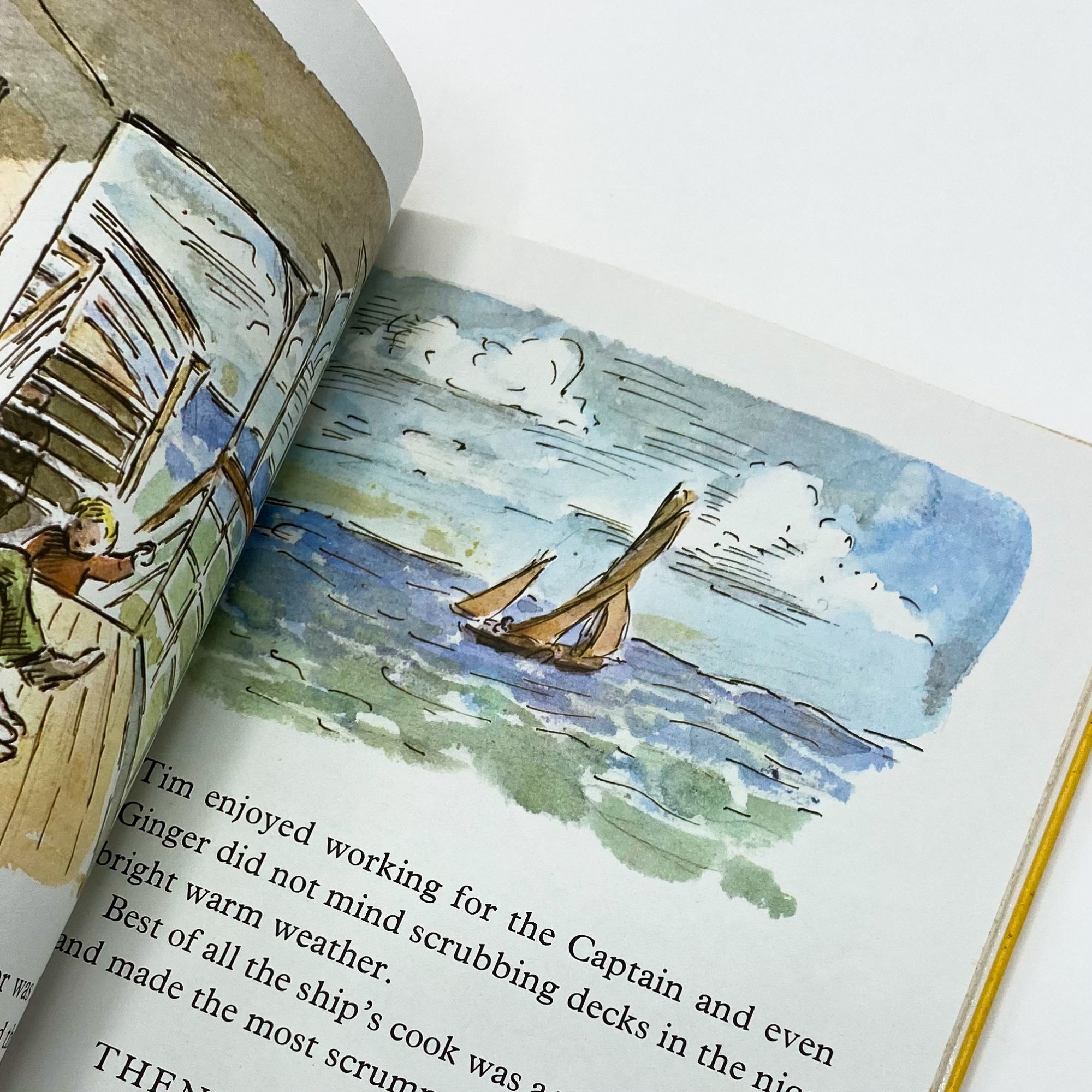 New York: Macmillan, 1977. Fine in very good plus jacket.. First edition, first printing of this Tim story in which Tim and Ginger must assist on a ship when the crew comes down with food poisoning. 10'' x 7.25''. Original pictorial boards. In original unclipped ($7.95) color pictorial dust jacket. Illustrated in color or line on every page. 48 pages. Touch of bumping to spine foot. Jacket with a closed tear to top front fold, a few spots of wear with curling, else bright and clean.