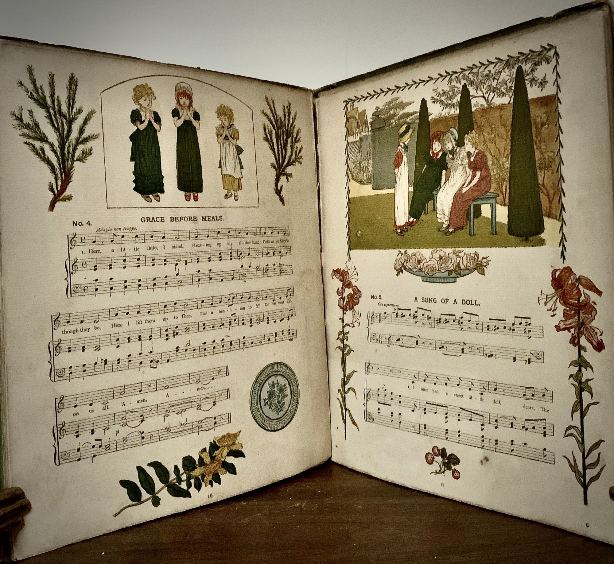 London: George Routledge & Sons, 1881. First edition. Hardcover. Orig. decorated and laminated light green boards. Very good. 29 pages. 25 x 21 cm. Music by Myles B. Foster. Owner inscriptions front endpapers and one on half-title dated 1884. There are three leaves decorated in color prior to title page. Cover lightly soiled, nicks to front cover fore-edge and front cover foot.