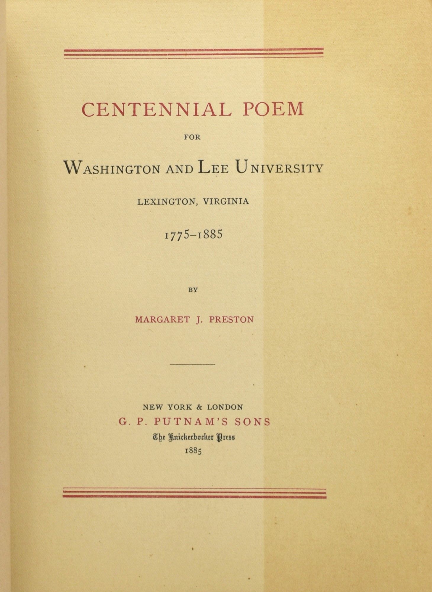[WASHINGTON & LEE] [VIRGINIA] CENTENNIAL POEM FOR WASHINGTON AND LEE UNIVERSITY. LEXINGTON, VIRGINIA. 1775-1885