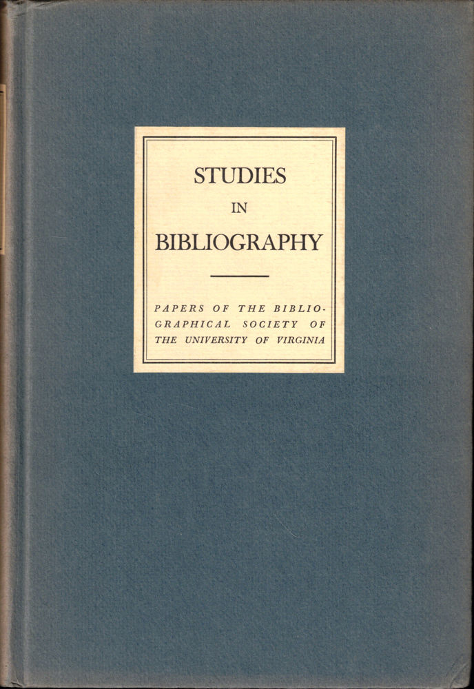Charlottesville: Bibliographical Society of the University of Virginia, 1951. Hardcover. Very good. Hardcover. 1000cc. 237pp. Spine sunned, else very good in publisher's blue boards with paper labels.